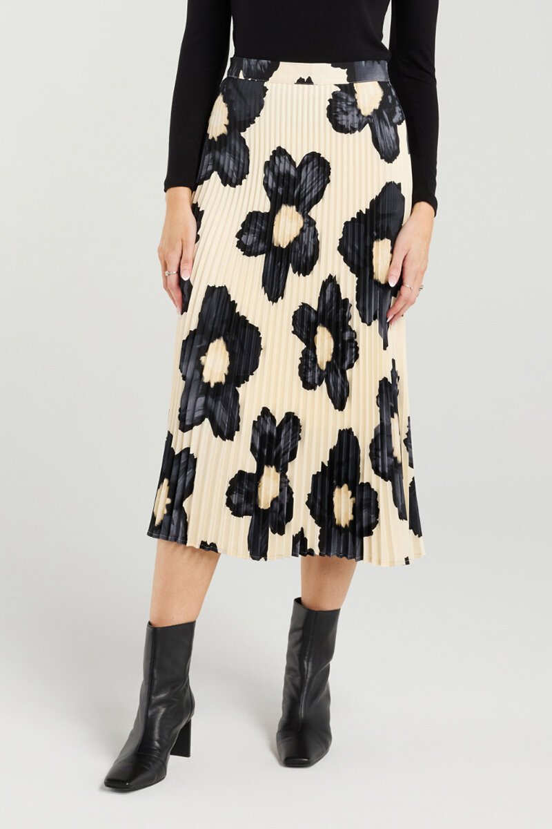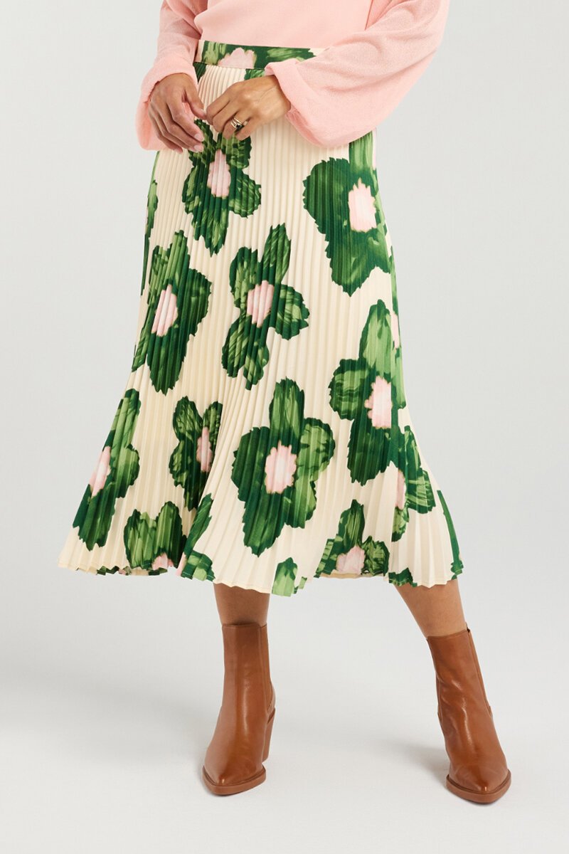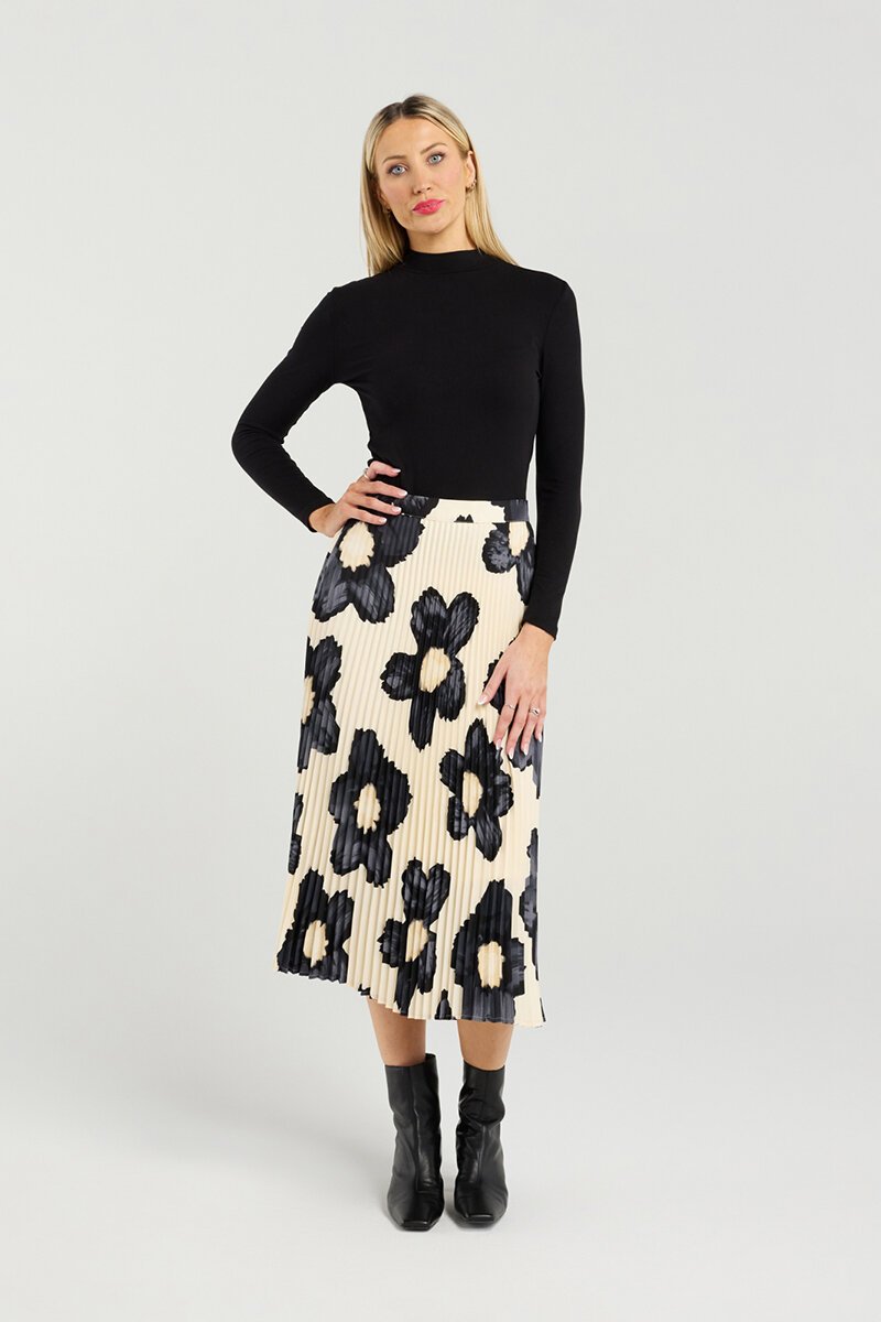 The Et Alia Sawyer Skirt is a modern statement midi with fluid pleats and bold floral impact. Designed to move beautifully, it's easy to dress up or down and pairs perfectly with simple knits or the matching bomber.