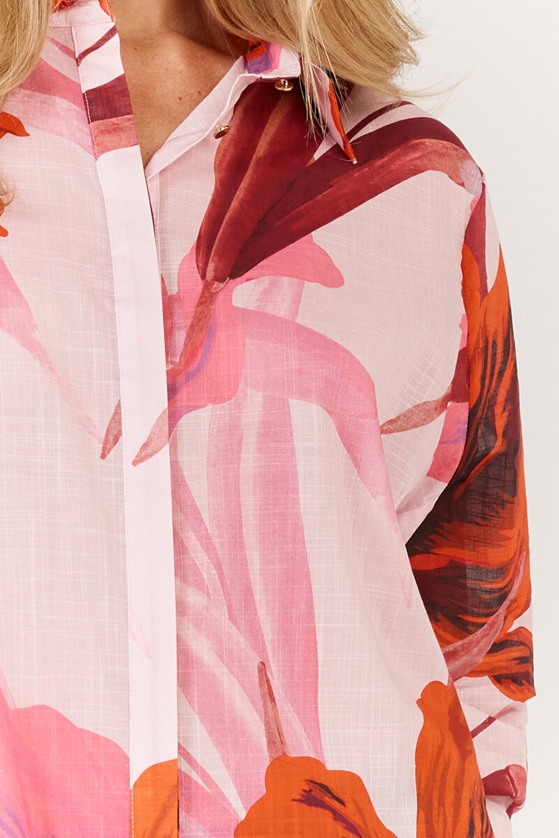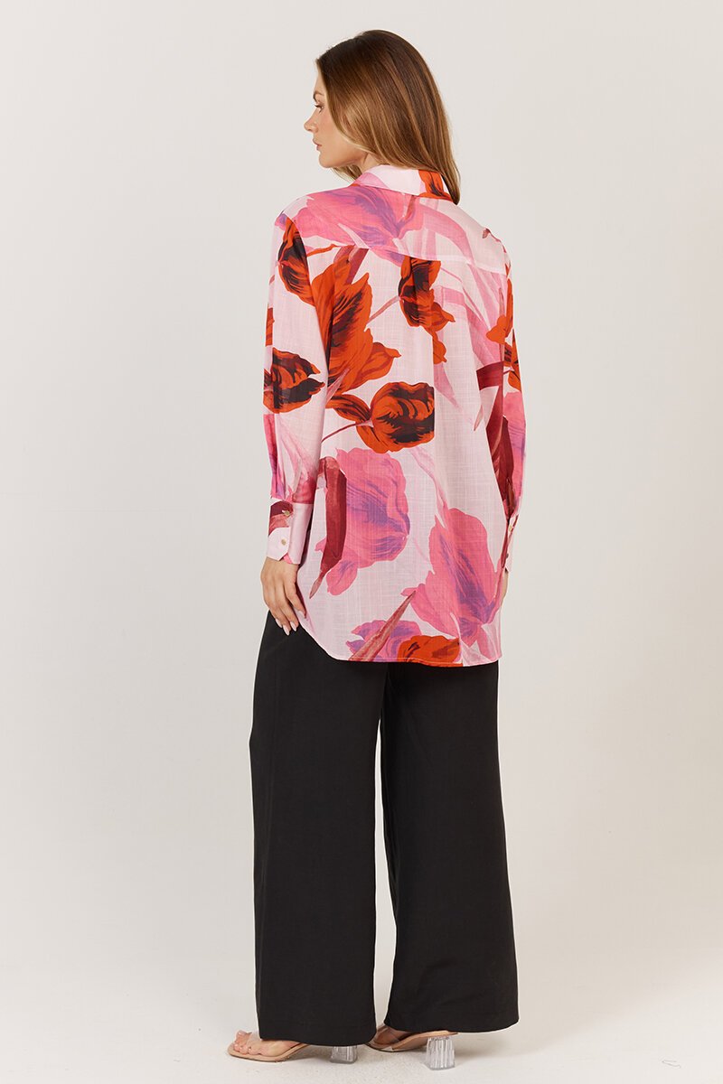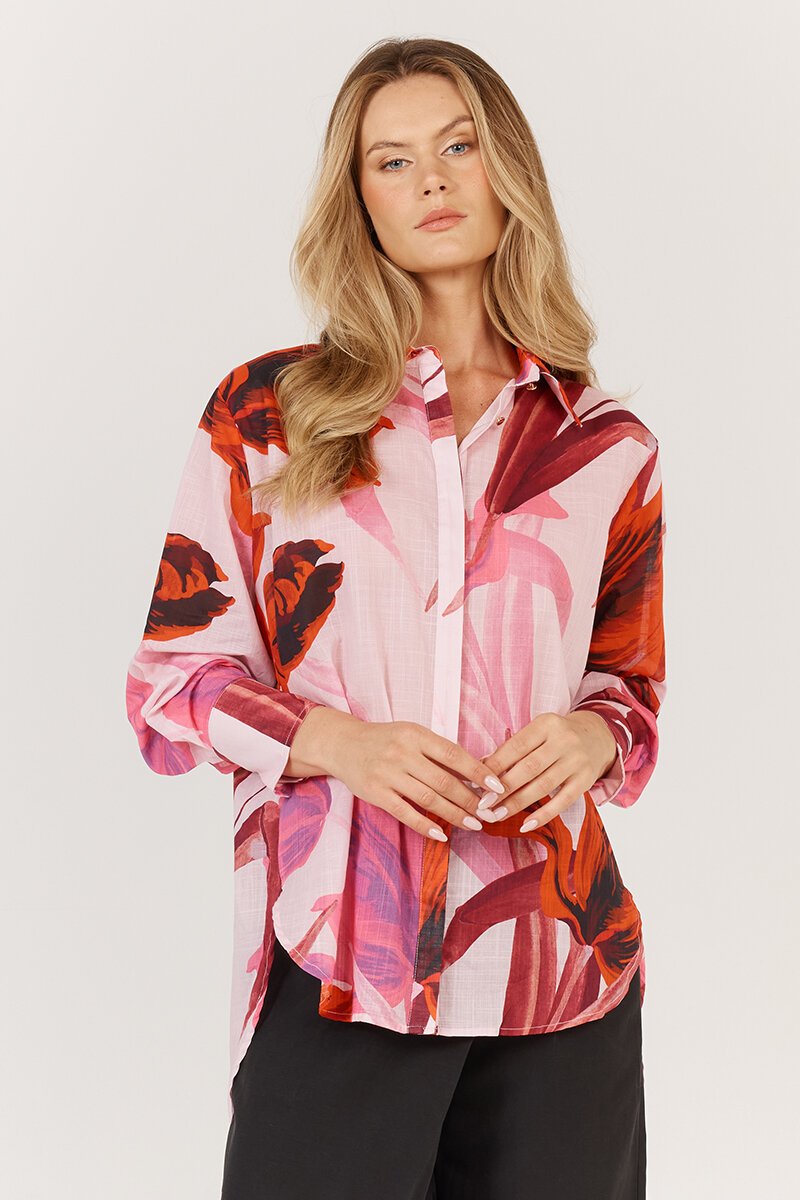 The Fate + Becker Confessions Shirt brings a dose of drama with its oversized floral print and easy button-up fit. Light and floaty with a relaxed silhouette, it's designed to be half-tucked, worn open, or fully buttoned for different moods and moments.