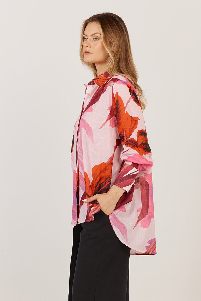 The Fate + Becker Confessions Shirt brings a dose of drama with its oversized floral print and easy button-up fit. Light and floaty with a relaxed silhouette, it's designed to be half-tucked, worn open, or fully buttoned for different moods and moments.