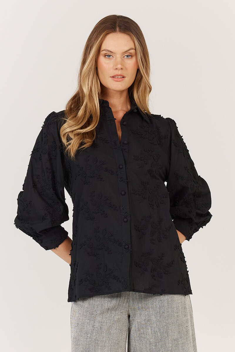 The Fate + Becker Gardenia Shirt is your pretty-yet-polished staple for spring. With all-over embroidery and soft, gathered sleeves, it adds a touch of texture without being too much. Perfect with denim or tailoring, depending on your day.
