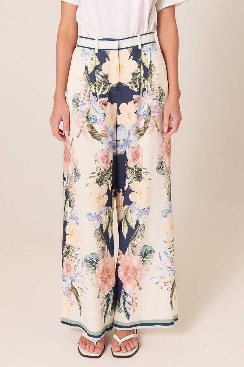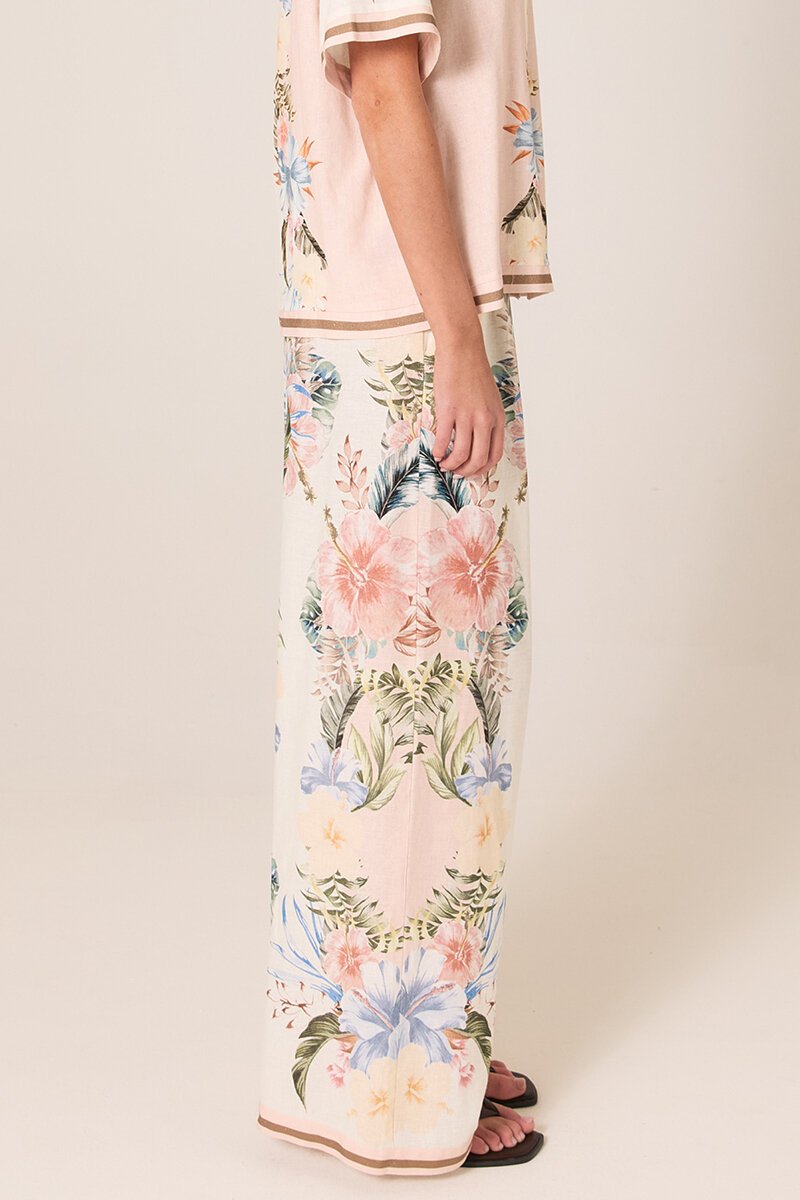 The Fate + Becker Solara Placement Print Pant features a flowing wide leg and statement placement print. Easy, flattering and lightweight, perfect styled with a simple tee or matching Solara top.