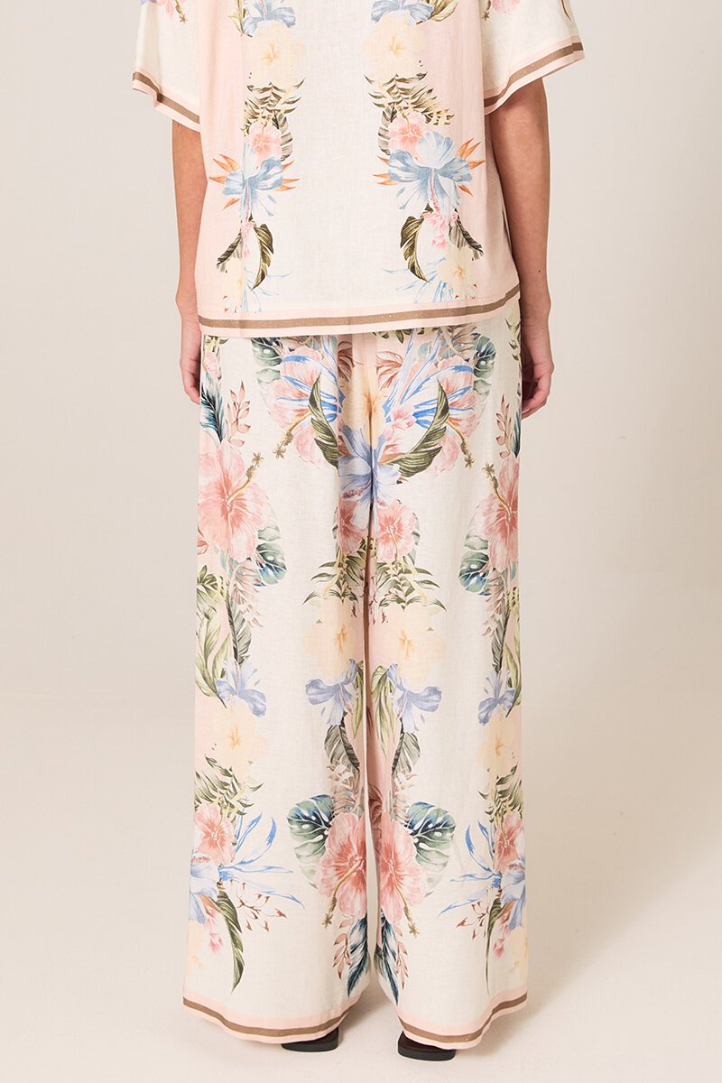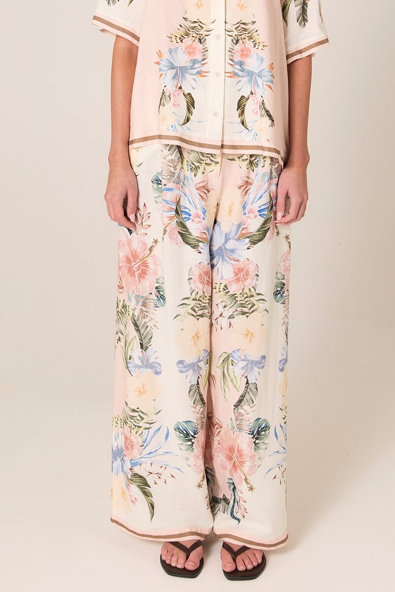 The Fate + Becker Solara Placement Print Pant features a flowing wide leg and statement placement print. Easy, flattering and lightweight, perfect styled with a simple tee or matching Solara top.
