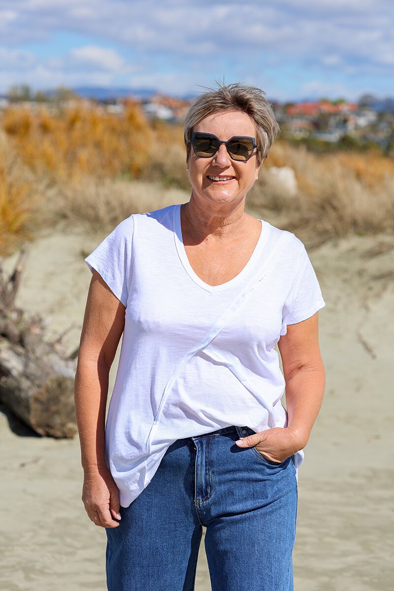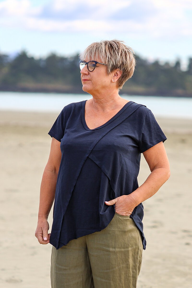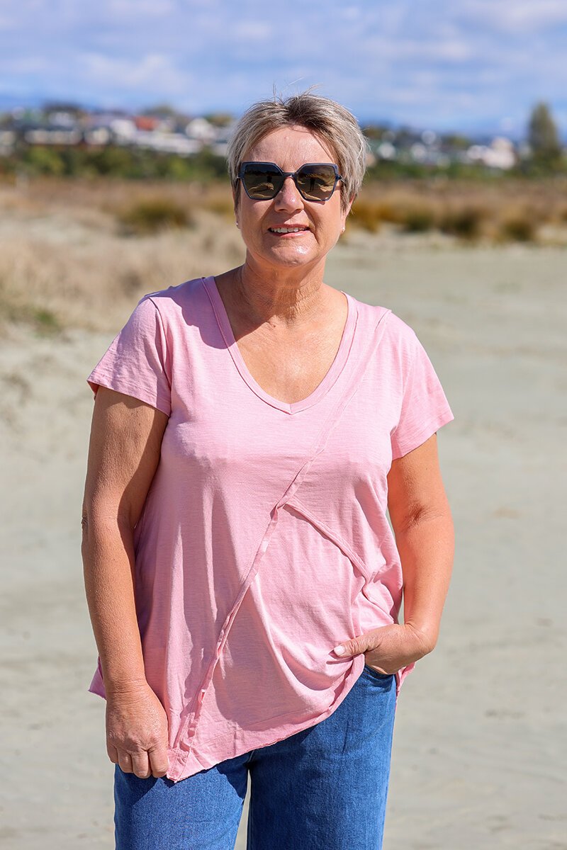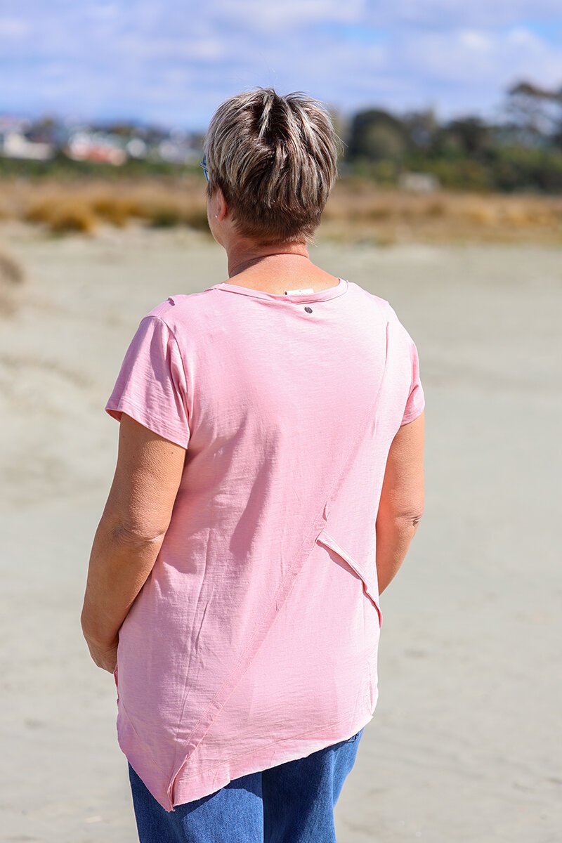 A wardrobe staple you’ll reach for all season. The Foil Angle Divine Tee keeps things fresh with a soft v-neckline and angled seam detail that adds a modern edge. Easy, versatile, and made for everyday wear.