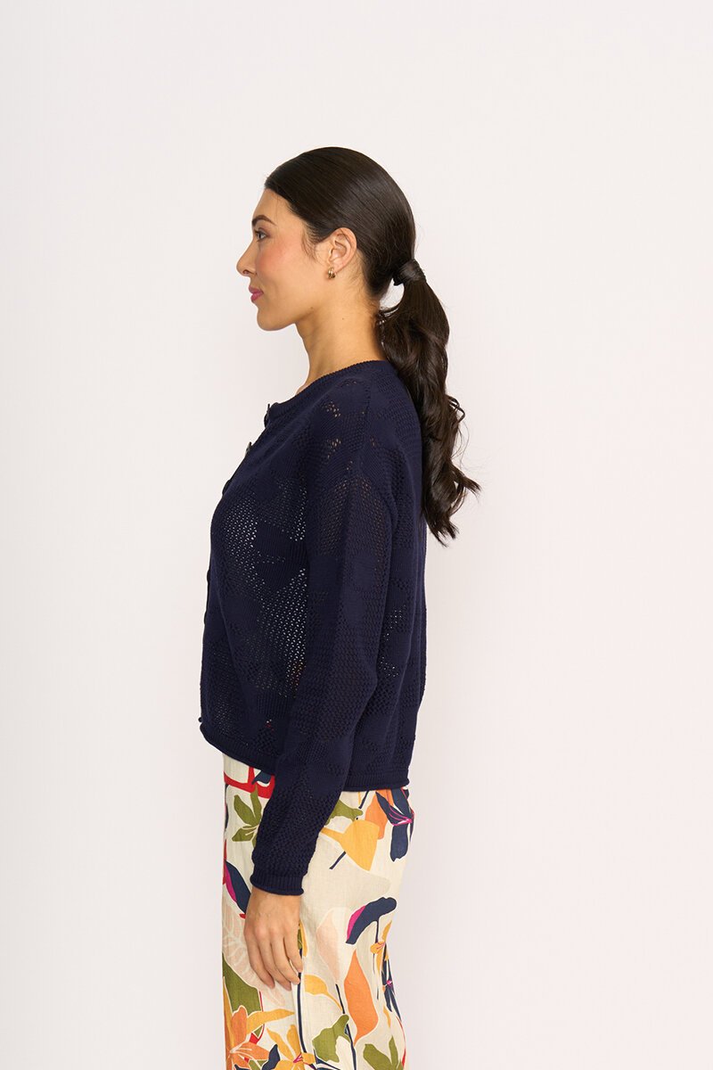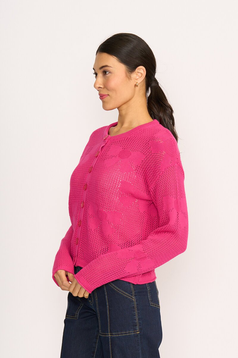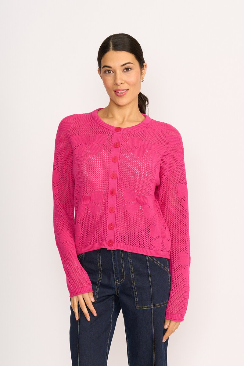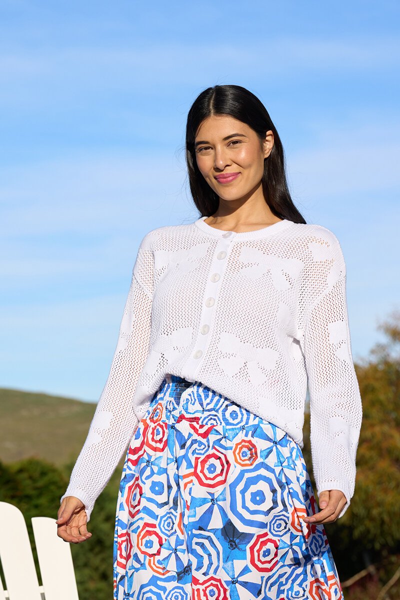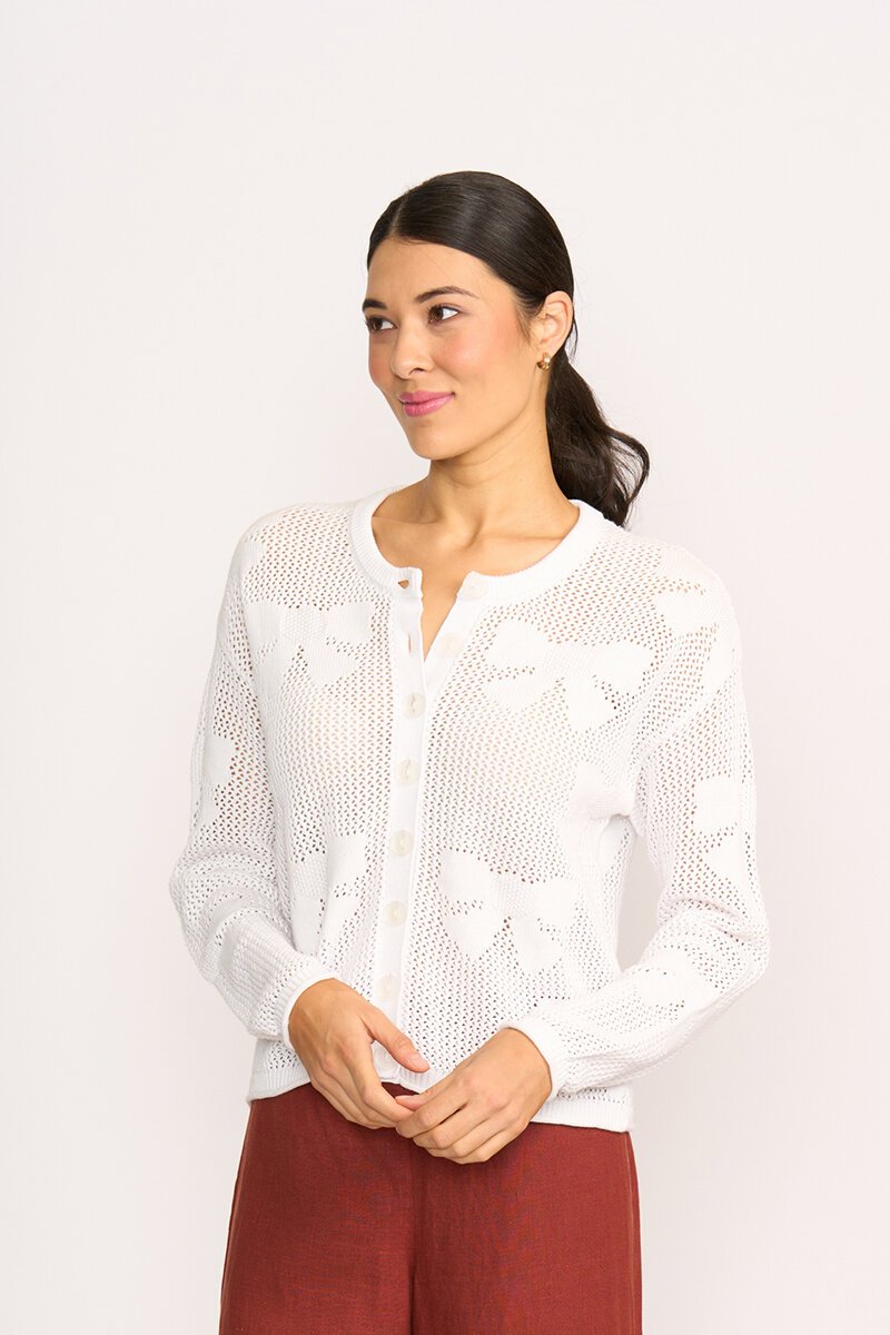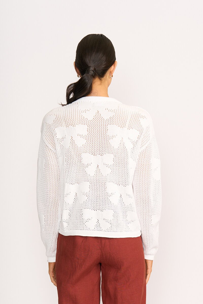 The Foil Bunch Of Bows Cardigan is a lightweight layer that makes a playful statement. With its intricate open-knit design and subtle bow motif, this cardi is perfect for adding a bit of fun texture to your everyday outfits