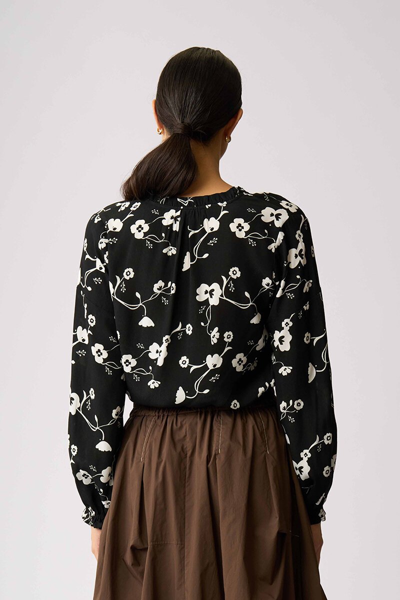 The Foil Elasticated Cuff Blouse is an easy statement piece with soft movement and a flattering drape. Perfect tucked into skirts or styled back with tailoring for effortless polish.