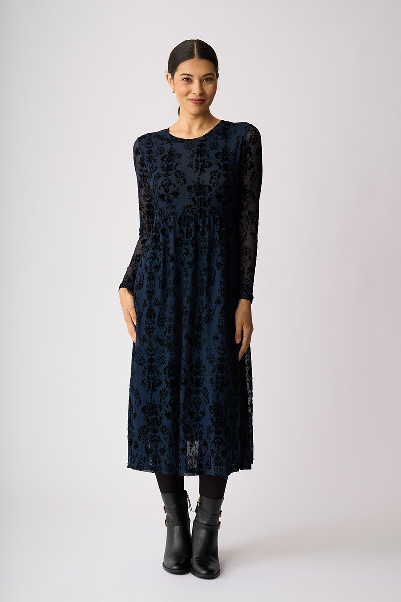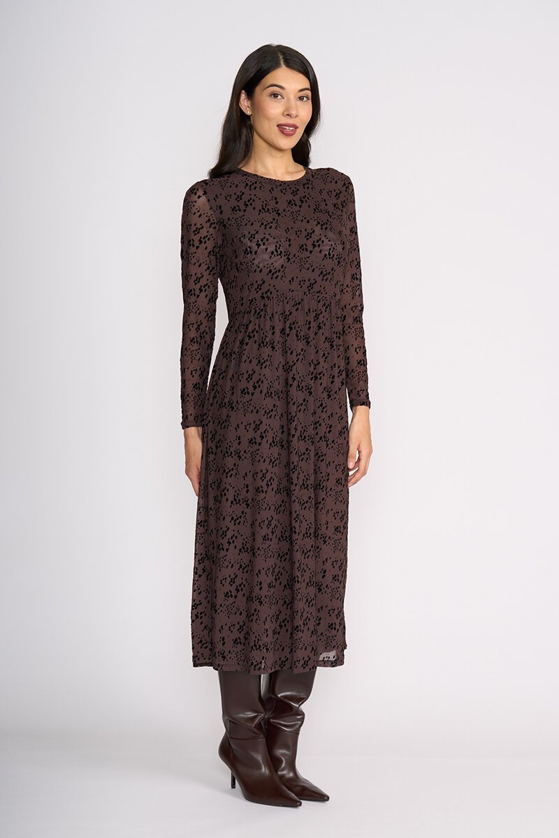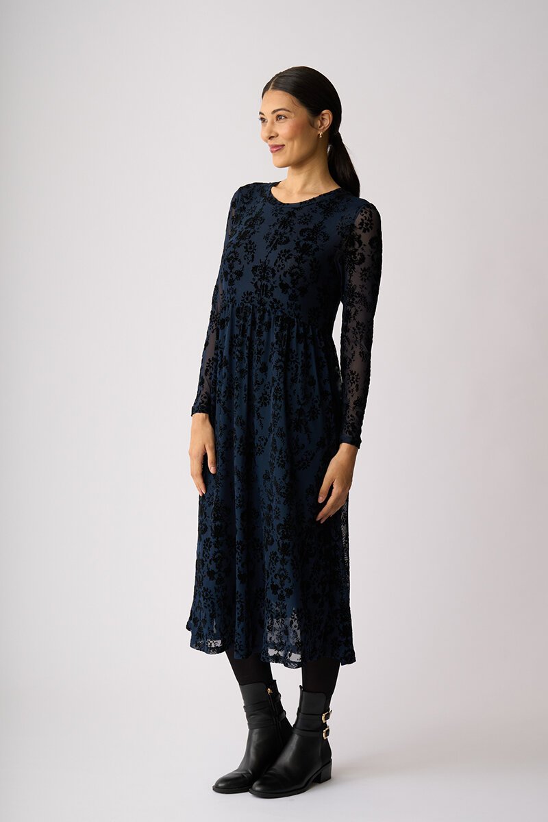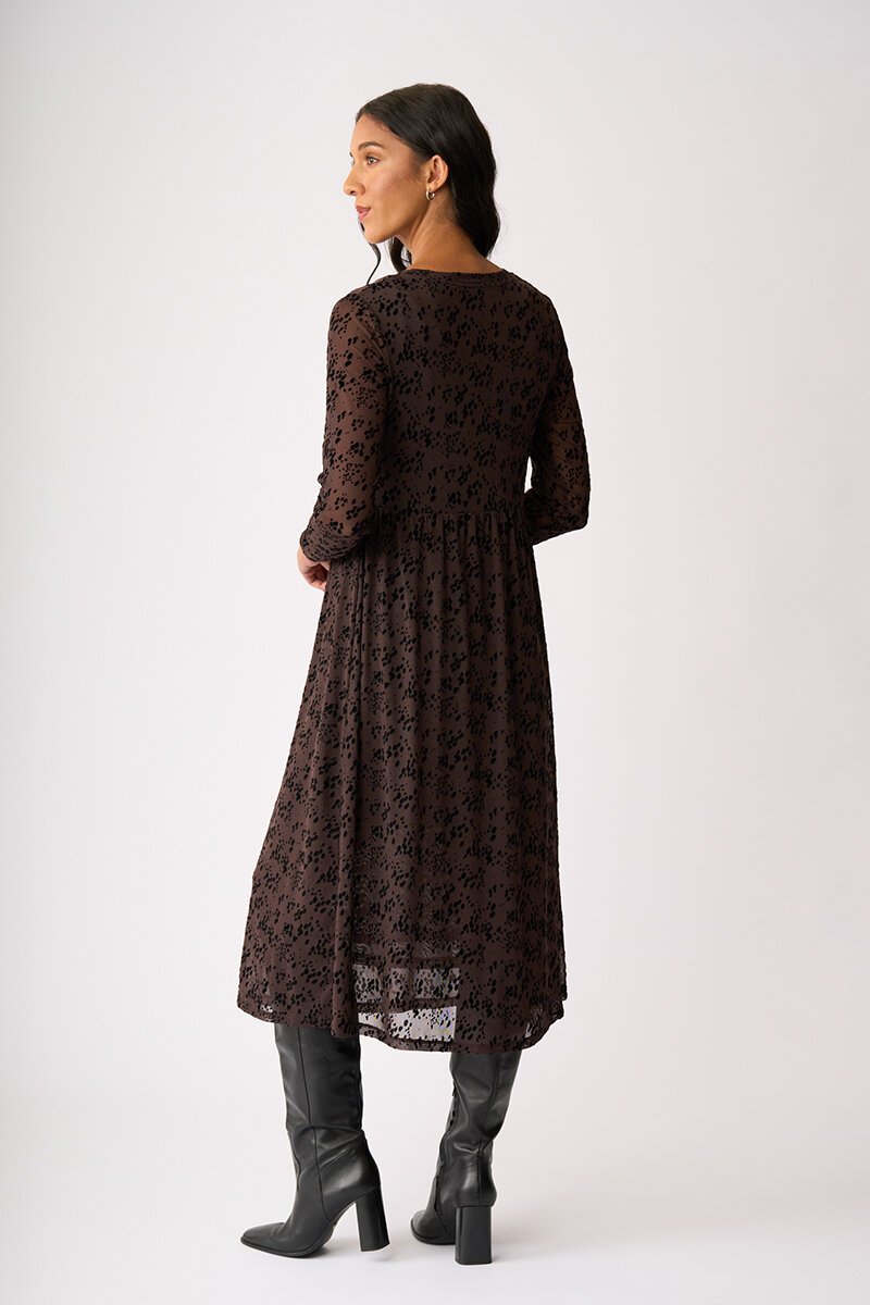 A floaty dress with a touch of texture. The Foil Flock Yeah Dress features soft flocked mesh with a subtle tonal pattern, creating beautiful movement through the skirt while keeping the silhouette easy and flattering..