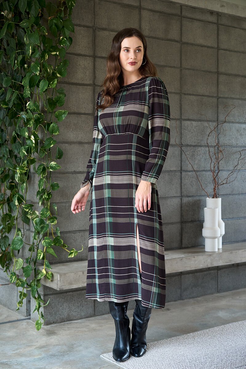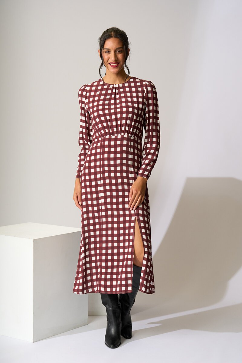 The Foil Gather Detail Maxi Dress is flattering, feminine and beautifully cut. Soft gathering through the waist creates shape, while the side split adds movement and ease for day-to-night styling.
