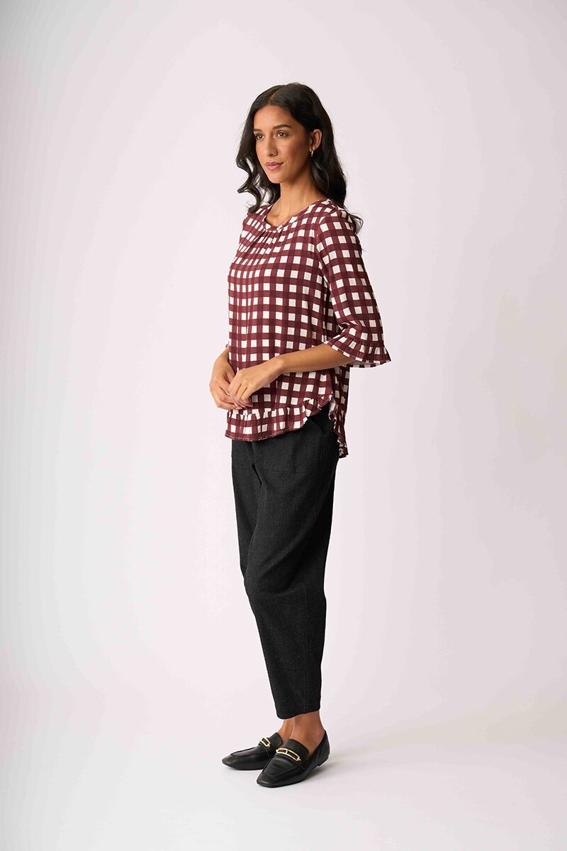 The Foil Gathered Scoop Hem Top is light, floaty and full of personality. With soft gathering and a playful hem, it’s an easy statement piece for everyday styling.