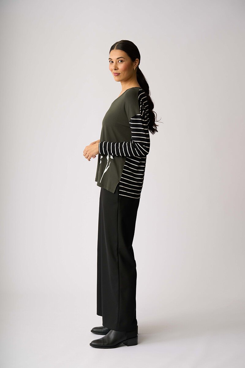 The Foil Iris Dreams Combo Print Top is an easy everyday favourite. Relaxed, soft and flattering, with a subtle floral feature and contrast striped sleeves for that extra detail.
