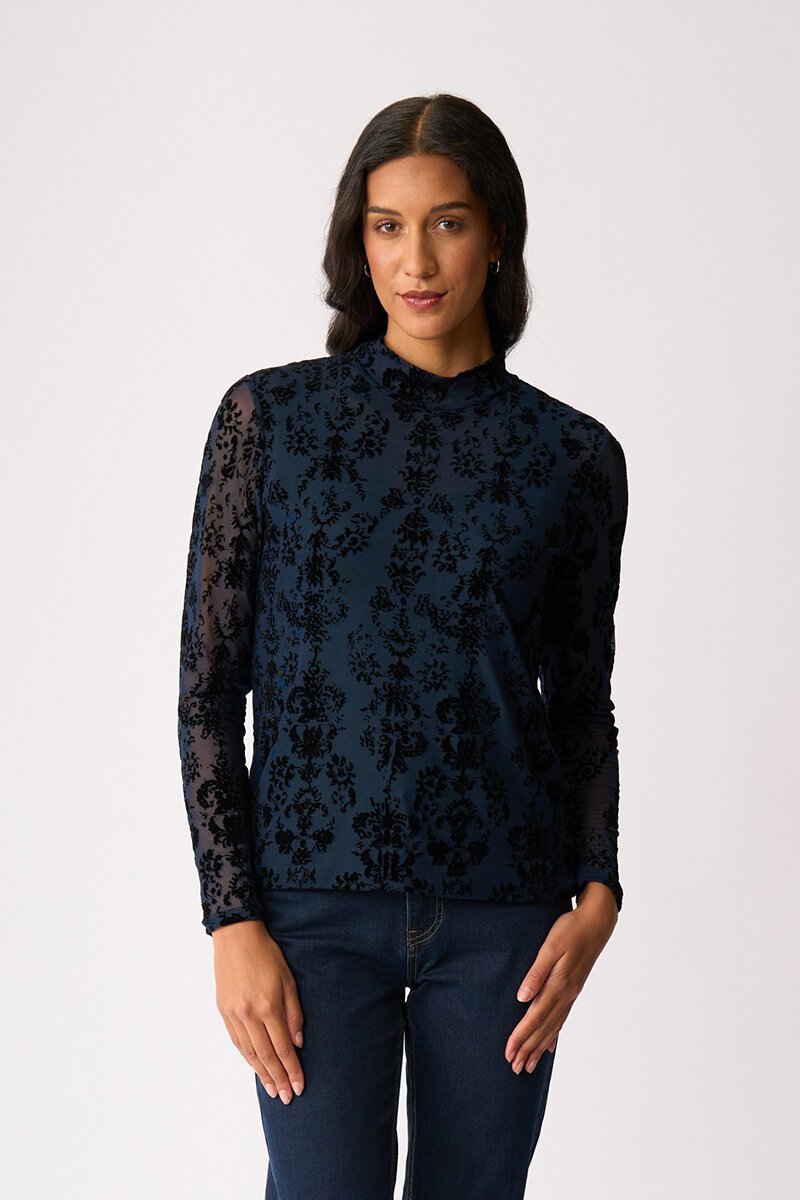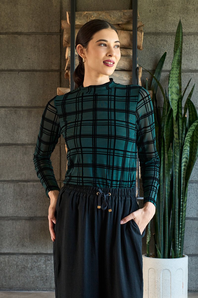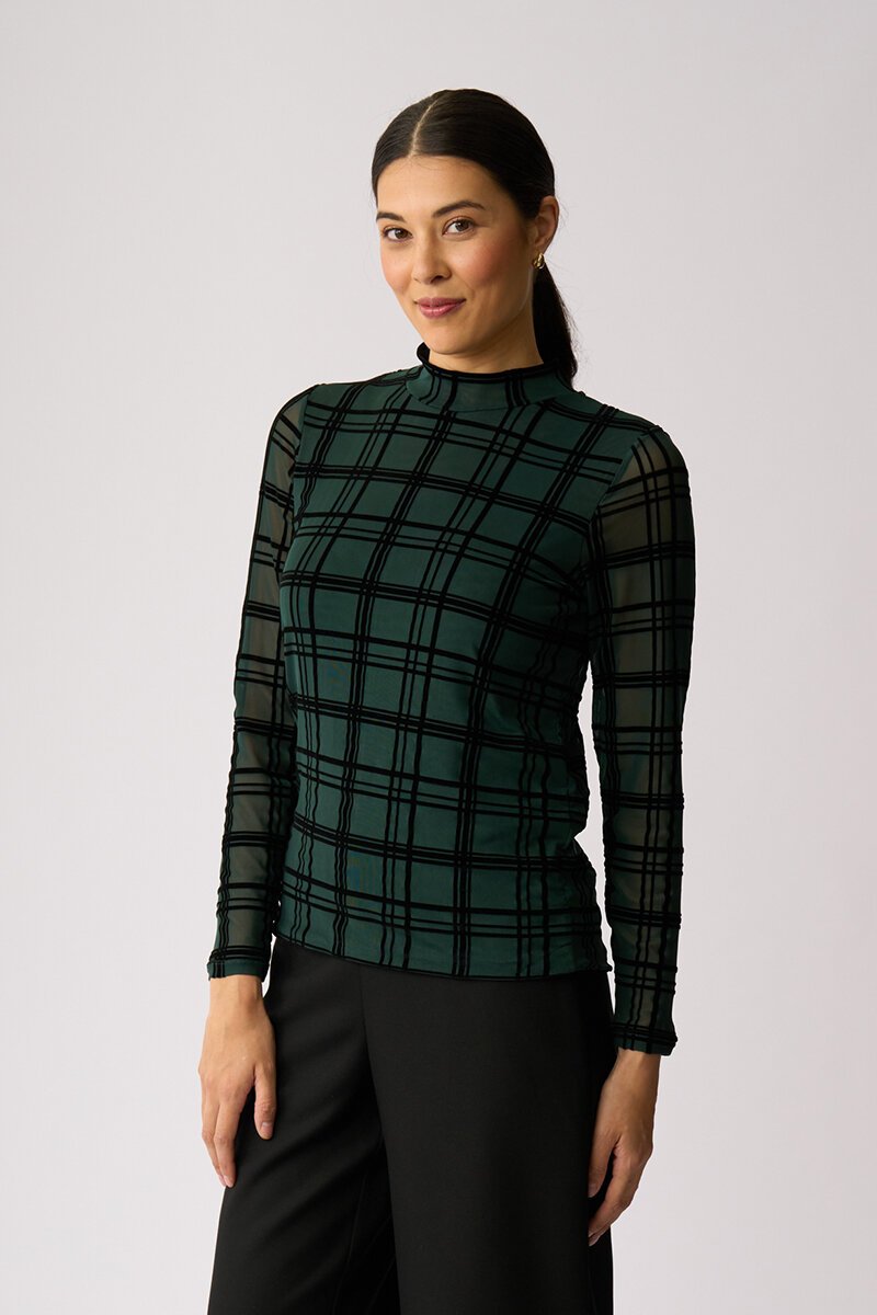 Your layering hero with a little attitude. This sheer mesh polo neck features a soft high neckline and fitted shape that skims beautifully. Perfect under knits and blazers, or worn solo when you’re feeling bold.