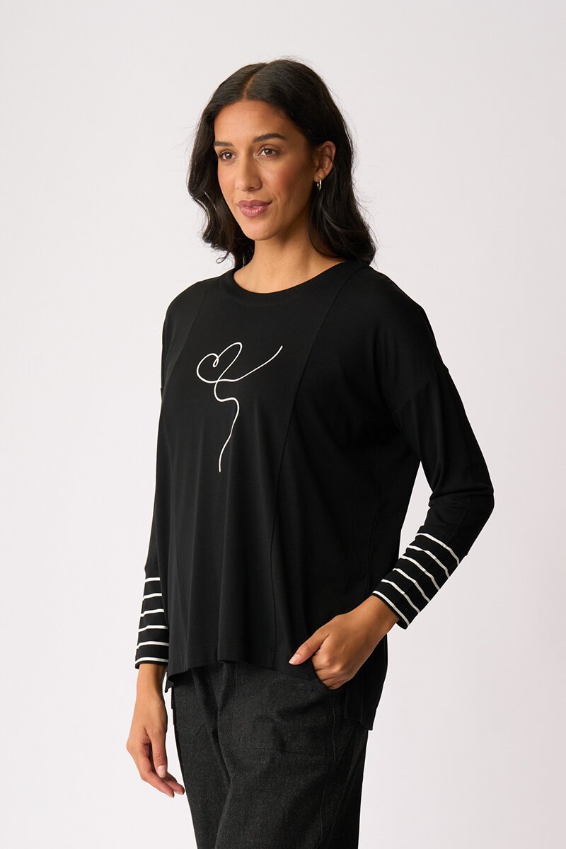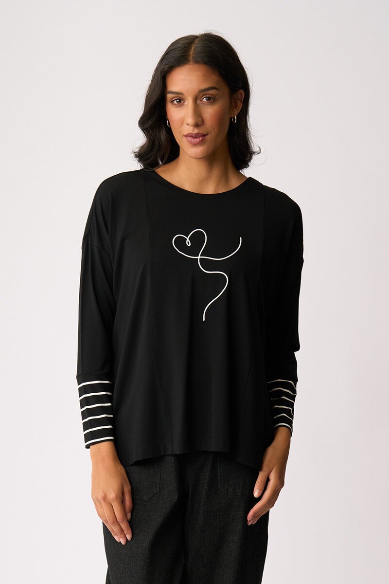 The Foil Love Connection Blocked Stripe Top is your everyday with a little personality. Relaxed, easy to wear and finished with a playful front graphic and contrast stripe sleeves for that effortless styled feel.