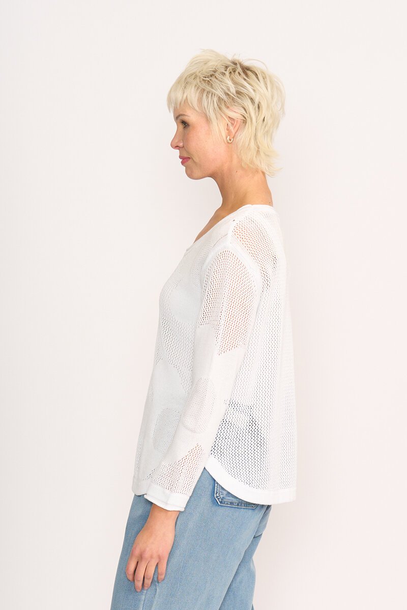 Foil Make My Daisy Sweater is your lightweight layer for everything from early morning coffees to seaside strolls. The oversized daisy design adds a touch of whimsy, while the breezy knit keeps things easy and relaxed.