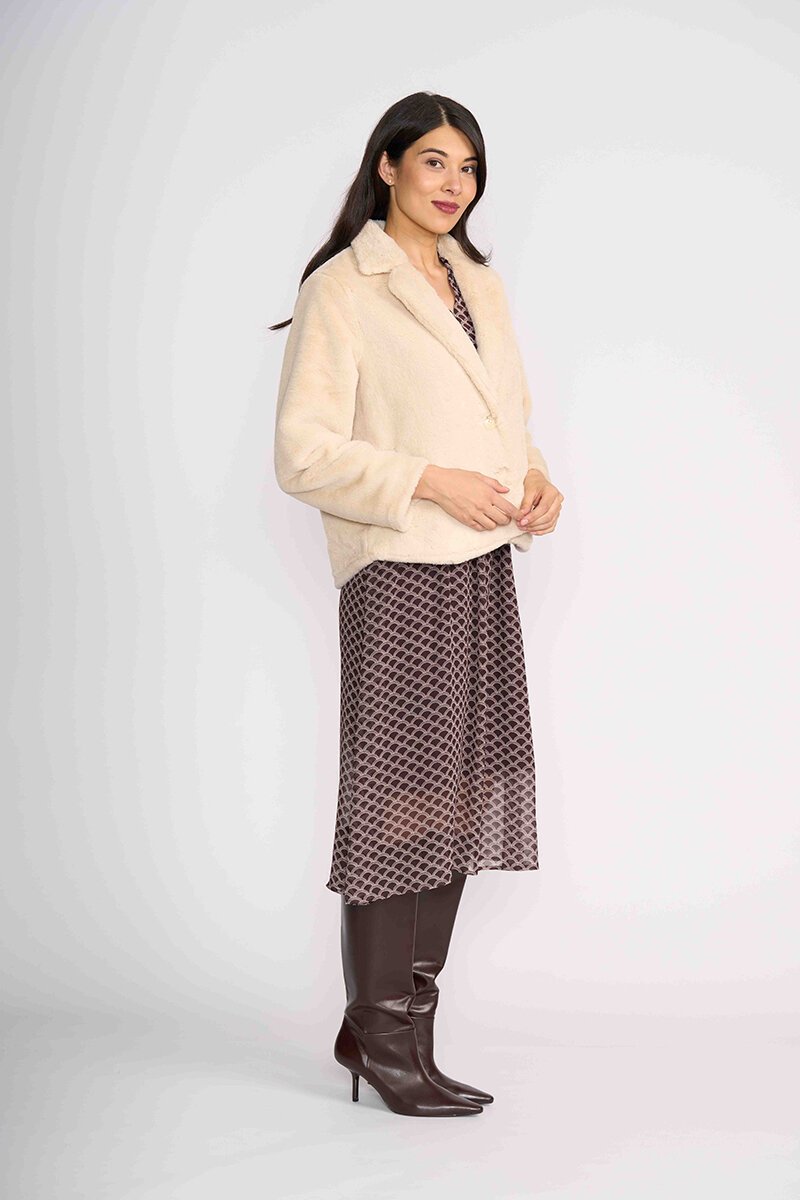 The Foil Monte Jacket is your cosy statement layer. Soft faux fur with a polished shape, it instantly elevates any outfit while keeping things warm, easy and effortlessly put together.