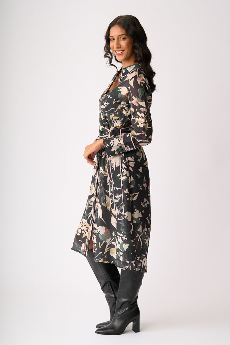 Floaty, flattering and full of personality. The Pipe It Up Shirt Dress features soft contrast piping, a button-through front and waist tie to shape as you please. It moves beautifully and feels just that little bit special.