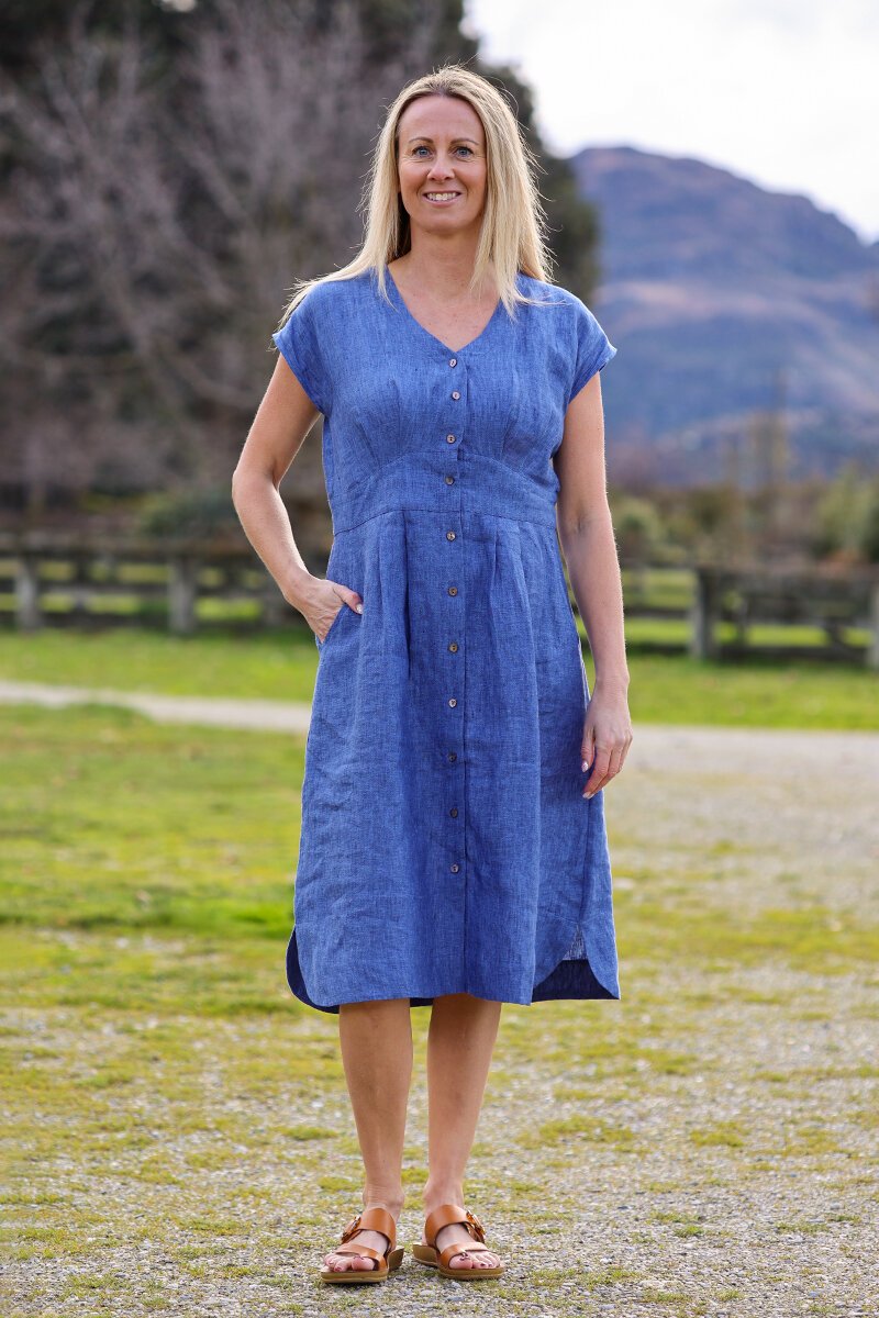 The Foil Plain Button Front Drop Shoulder Dress is a timeless 100% linen style made for easy summer wear. With soft shaping through the waist, cap sleeves, and practical pockets, it’s your go-to for relaxed days that still feel put together.