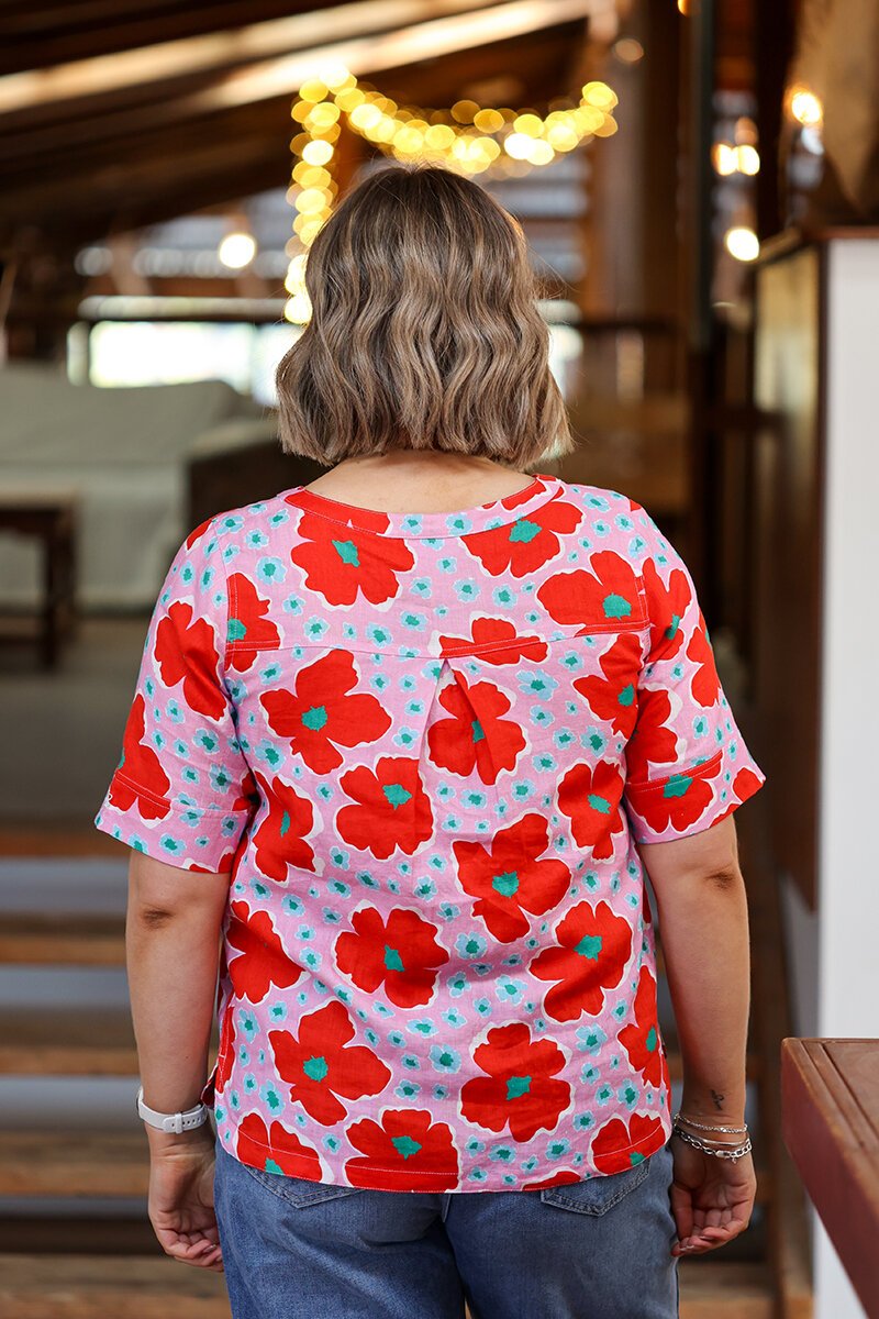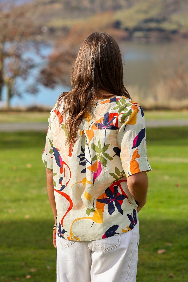 A fresh update on a classic linen top. Keeping it easy through the front and adds a playful pleat detail at the back. Slightly boxy with a neat sleeve—perfect for sunny days and easy pairing