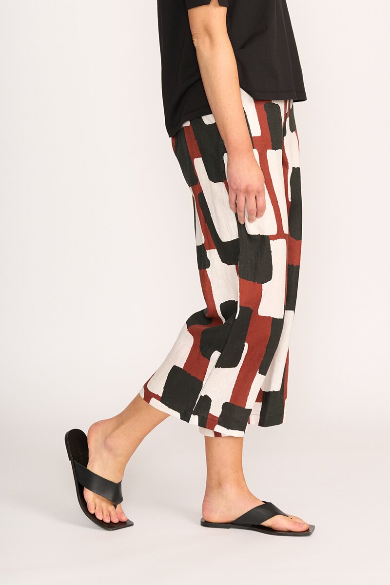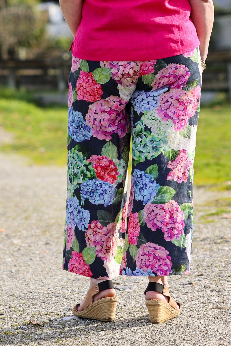 Easy, breezy and made for sunny days. These wide leg cropped pants are pure linen and feature a soft drape and a relaxed, pull-on waist for total comfort. Perfect with a simple tee or matching jacket for a print-on-print moment.