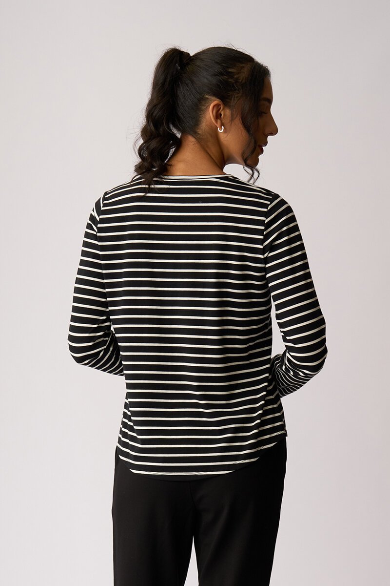 A classic long sleeve tee with a fresh Foil twist. Perfect for layering under vests or shorter length sleeve jumpers. You cant go wrong with these stripes and point of difference.