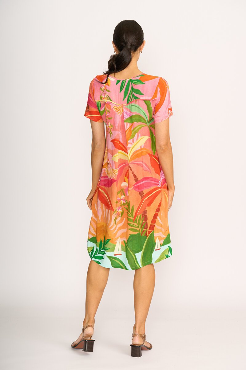 Sunshine-ready and cut to move, this easy throw-on dress is your new holiday hero. With a relaxed A-line fit and fun back pleat detail, it swishes with every step—whether you’re beach-bound or heading out for brunch.
