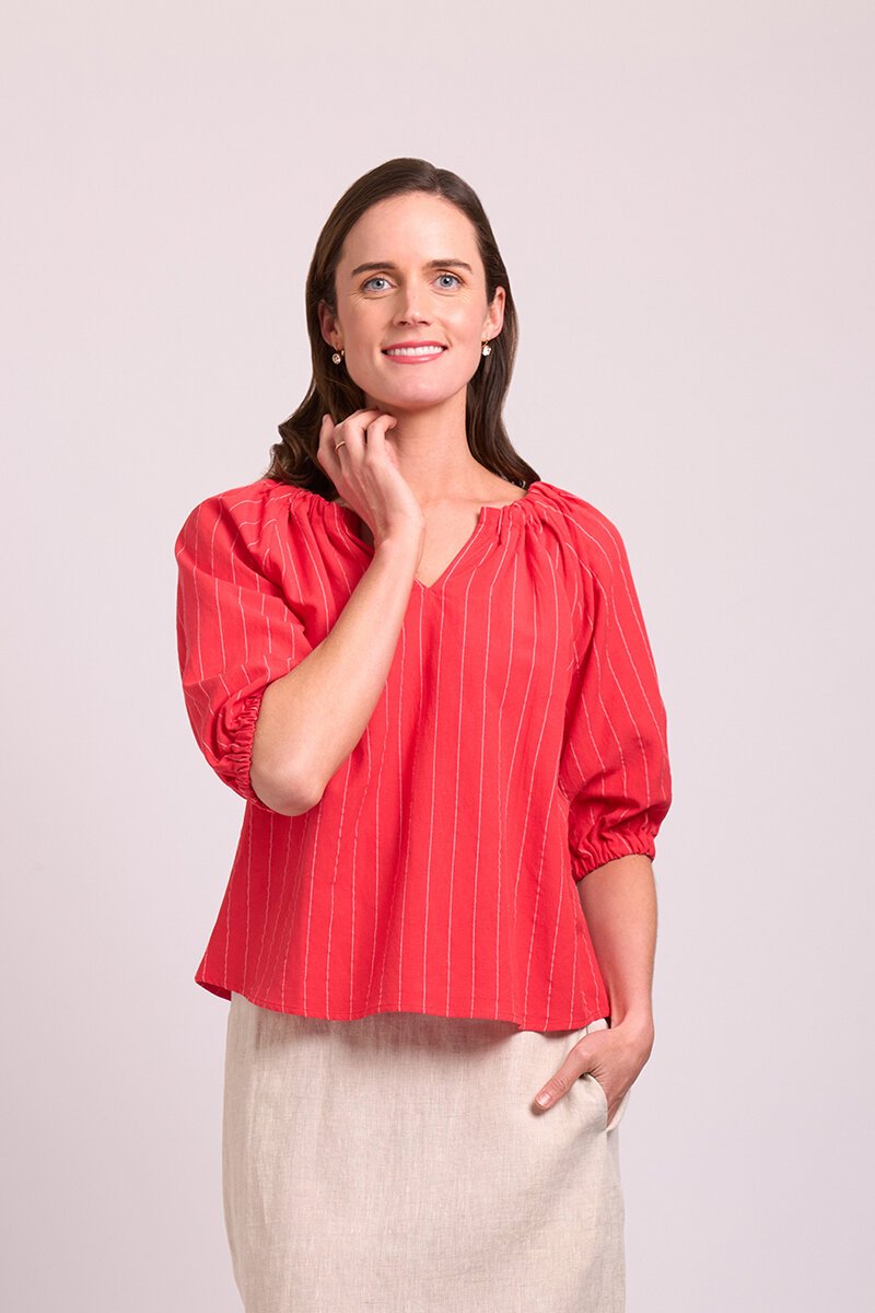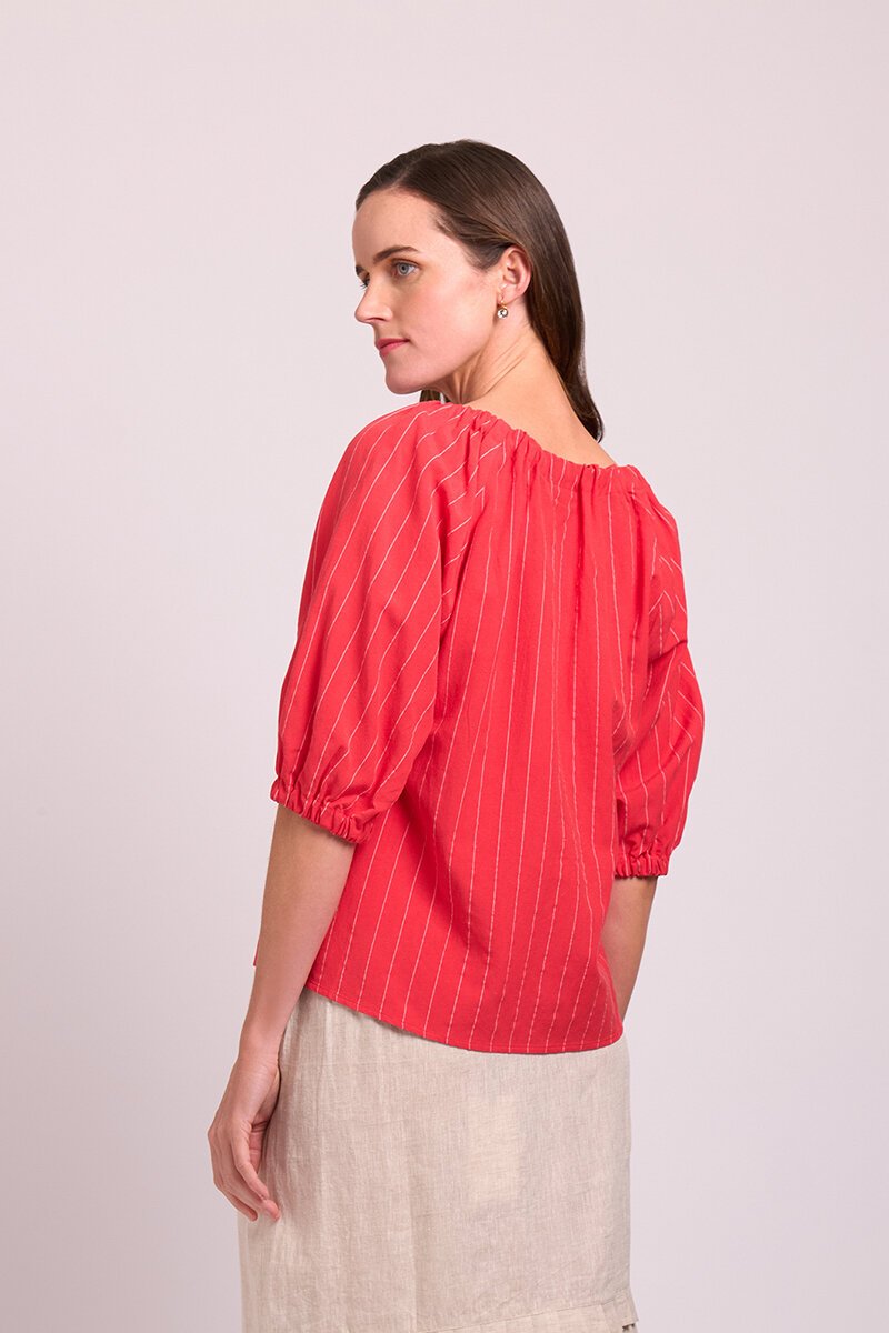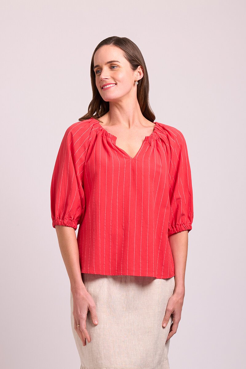 The Foil Turn Up The Volume Top is a chic blouse with a playful vibe. Its loose, flowy silhouette and voluminous sleeves make it a standout piece, perfect for adding a bit of flair to your outfit. Dress it up with tailored trousers or keep it casual with jeans.