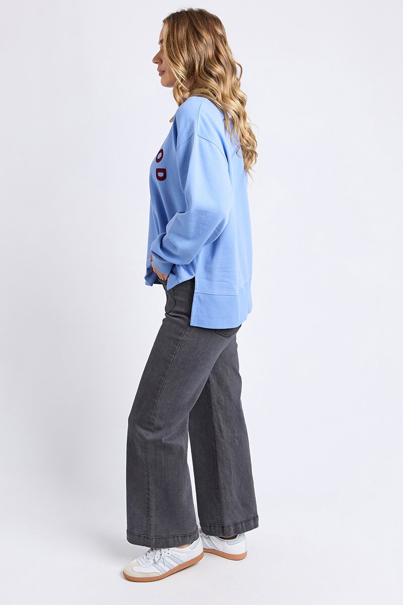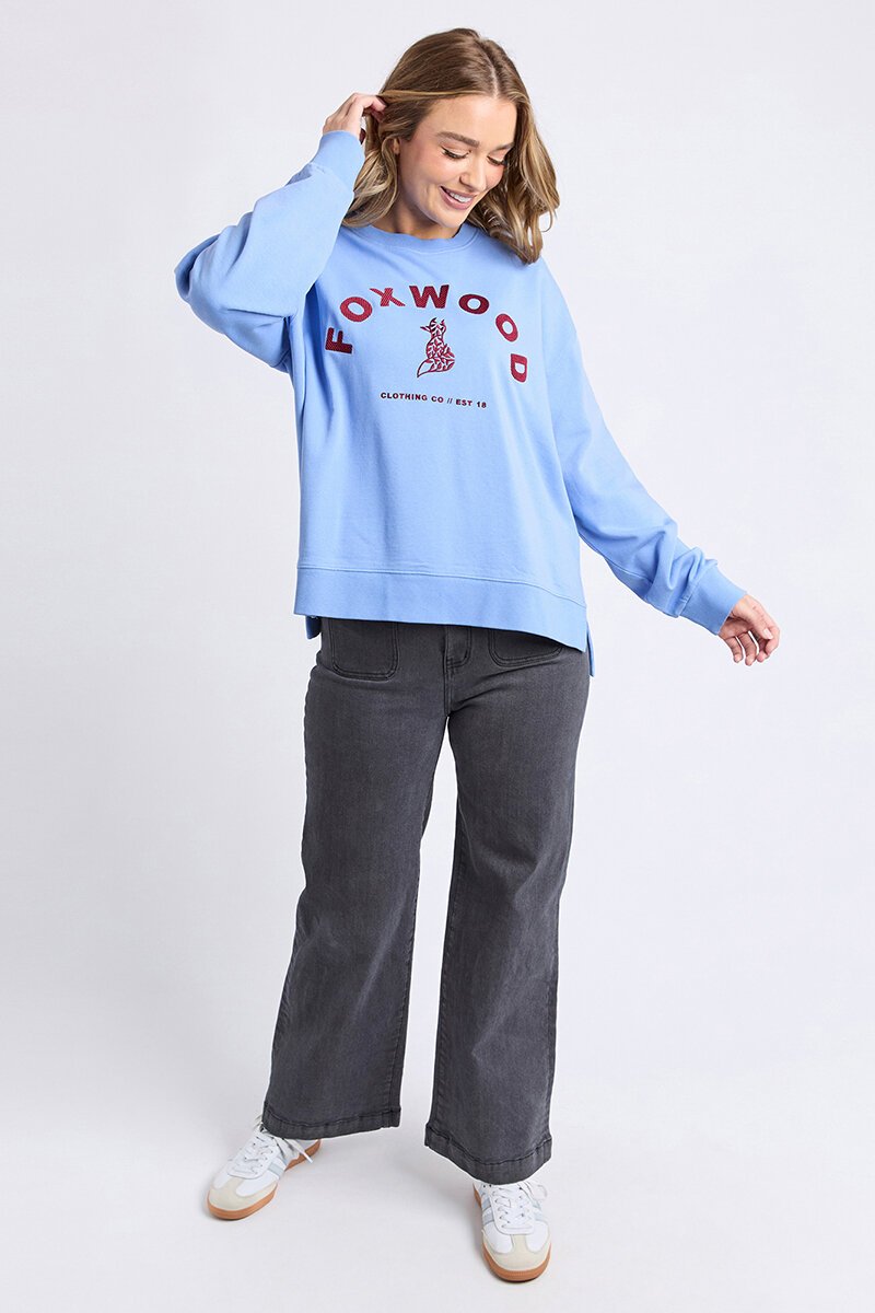 The Foxwood Effortless Contrast Crew has a beautiful blue base with an on trend wine coloured logo.