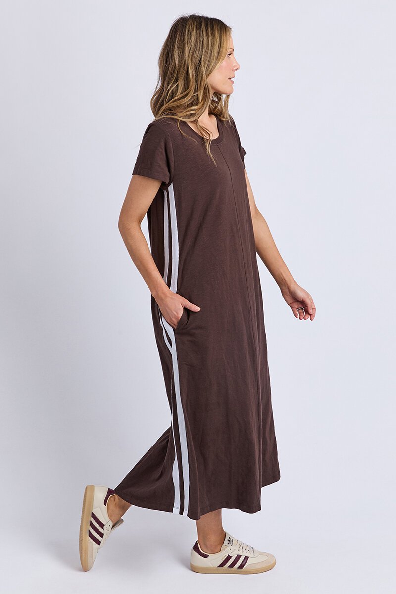 The Foxwood Recovery Dress is your throw-on-and-go hero. Soft, breathable cotton with an easy midi length and sporty side stripe detail, it moves with you and feels great all day. Style it with sneakers for everyday or slides for relaxed weekends.