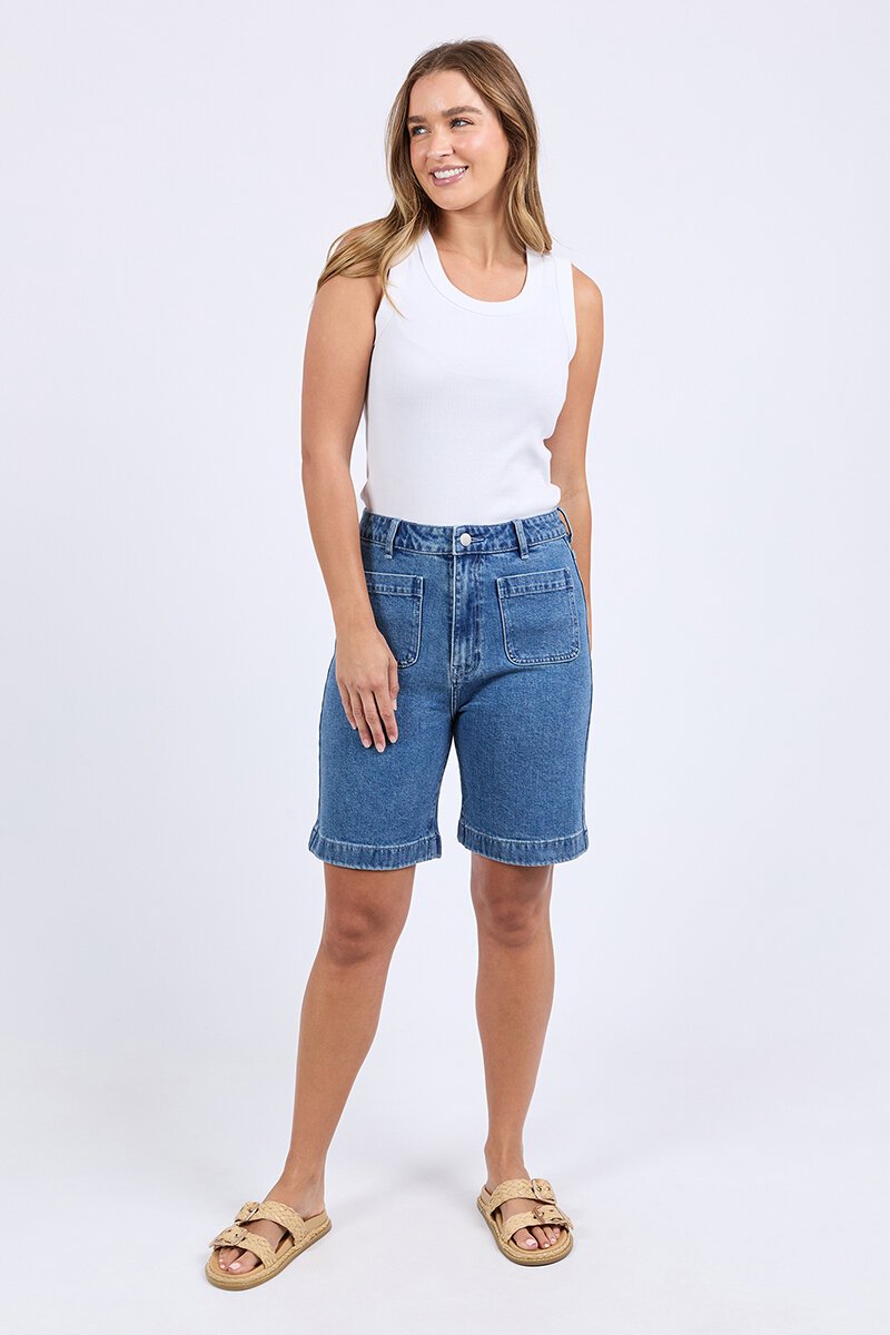 The Sarah Short is your new go-to for relaxed days. With a longer length and comfy mid-rise waist, these denim shorts feel flattering and easy all at once. Patch pockets and a cuffed hem keep it casual but polished.