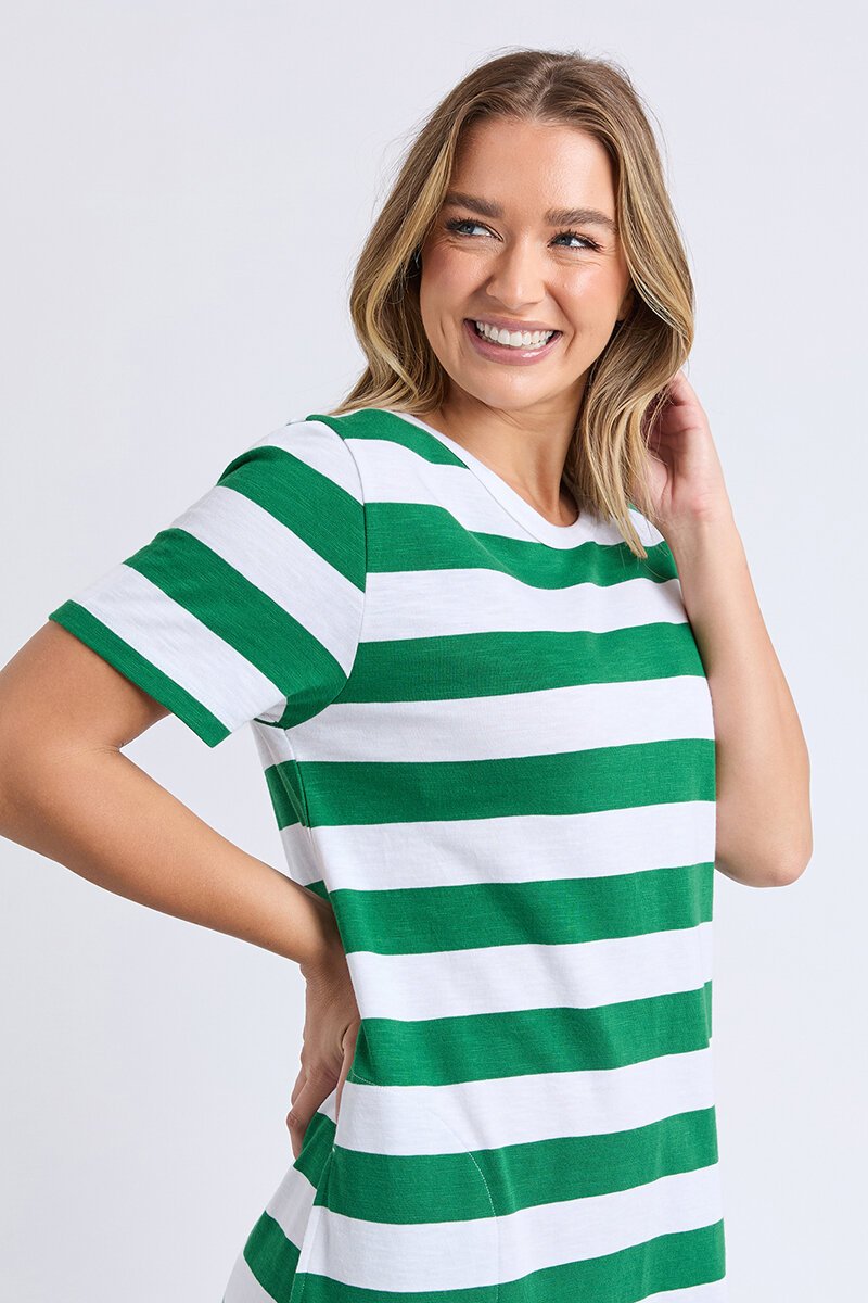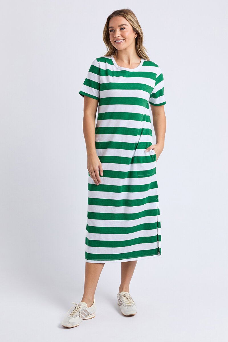 The Foxwood Tallow Dress is the definition of easy summer dressing. With its relaxed fit, bold stripes, and soft stretch-cotton feel, it’s made for comfort and style. Finished with side splits and pockets, it’s perfect for weekend strolls or long lunch catch-ups.
