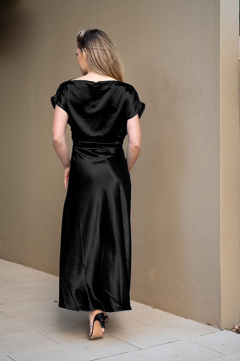 The Fria The Label After Dark Satin Dress brings effortless elegance to evening dressing. With its lustrous satin finish, draped top, and flowing asymmetrical hemline, it’s designed to move beautifully. Pair with strappy heels for a sleek, timeless night-out look.