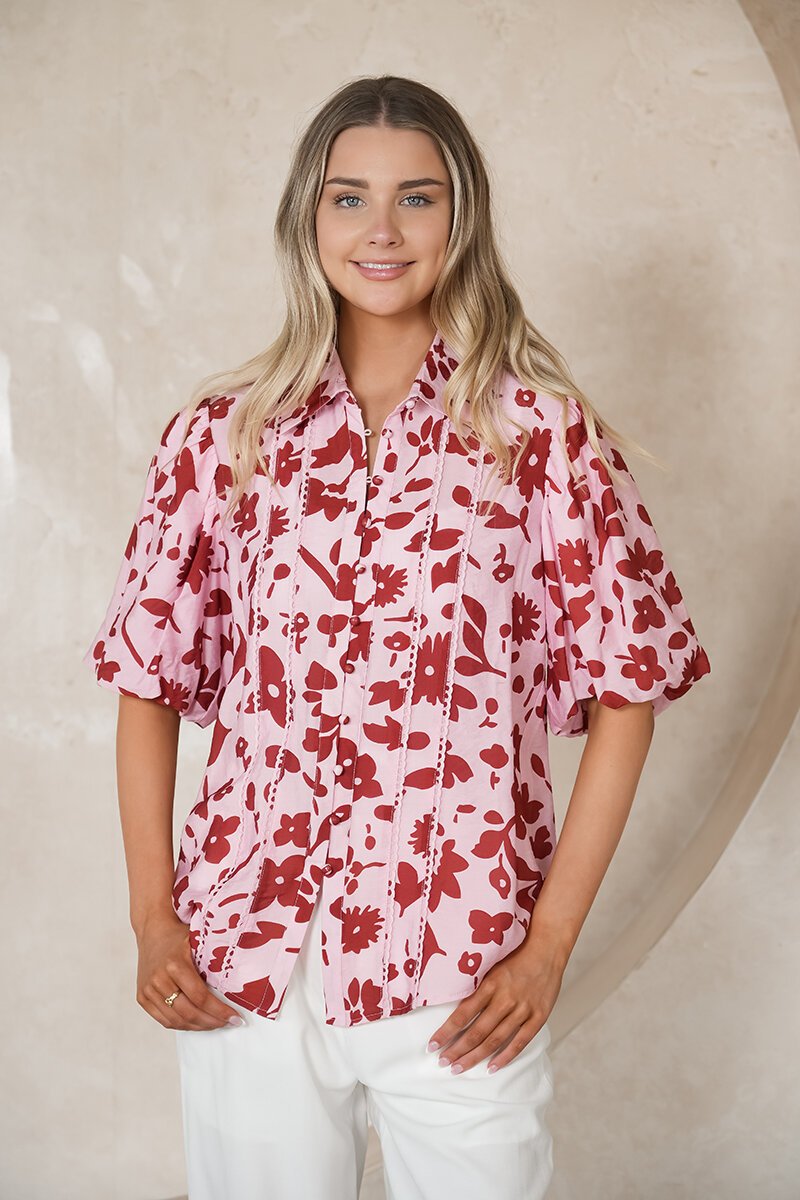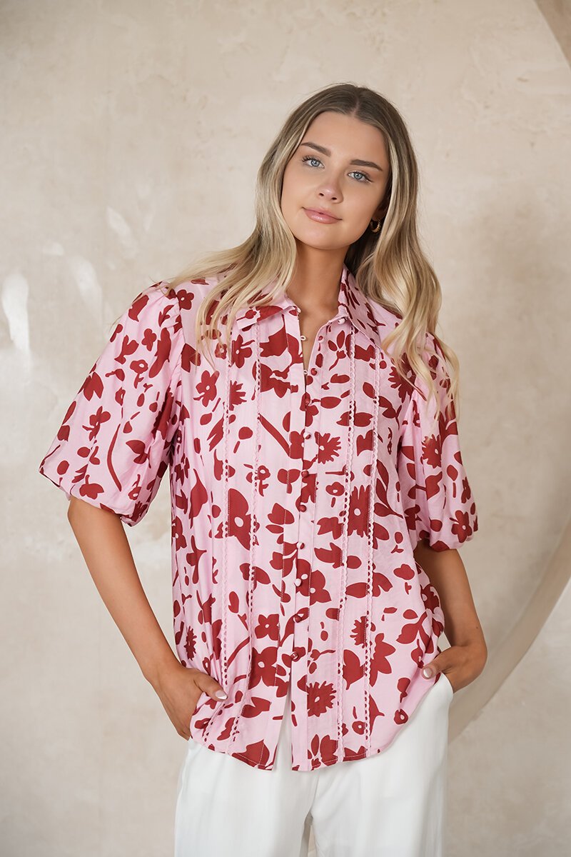 The Fria The Label Floral Lace Trim Blouse is a soft pink floral blouse with fresh, feminine styling. The top’s relaxed fit and subtle detailing make it an everyday piece you’ll reach for often.