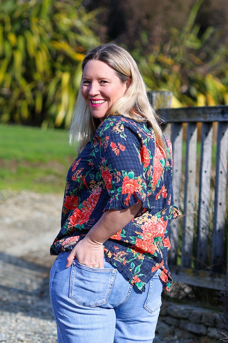 The Glam Navy Haven Top is vibrant and easy to wear. Featuring bold florals against a navy base with ruffle trim sleeves, it’s lightweight and relaxed—perfect for pairing with jeans or linen for an effortless, everyday look.
