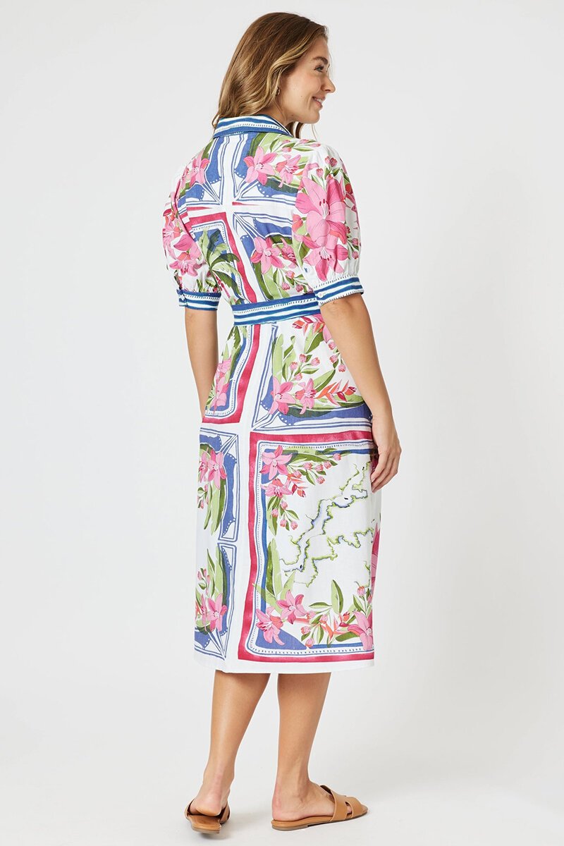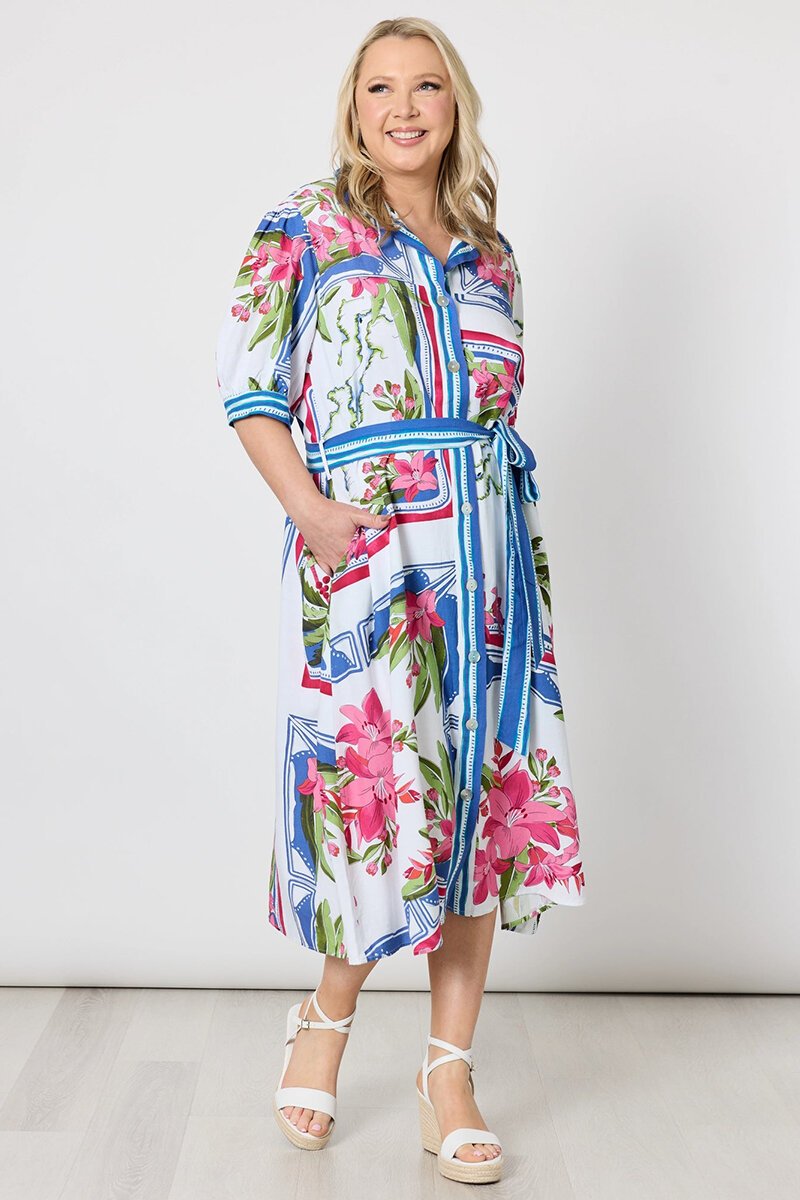 The Gordon Smith Monaco Dress brings effortless sophistication with its striking mix of florals and stripes. Designed with a button-through front, short sleeves, and a tie belt, it’s the perfect blend of structure and flow for everyday wear or summer outings.