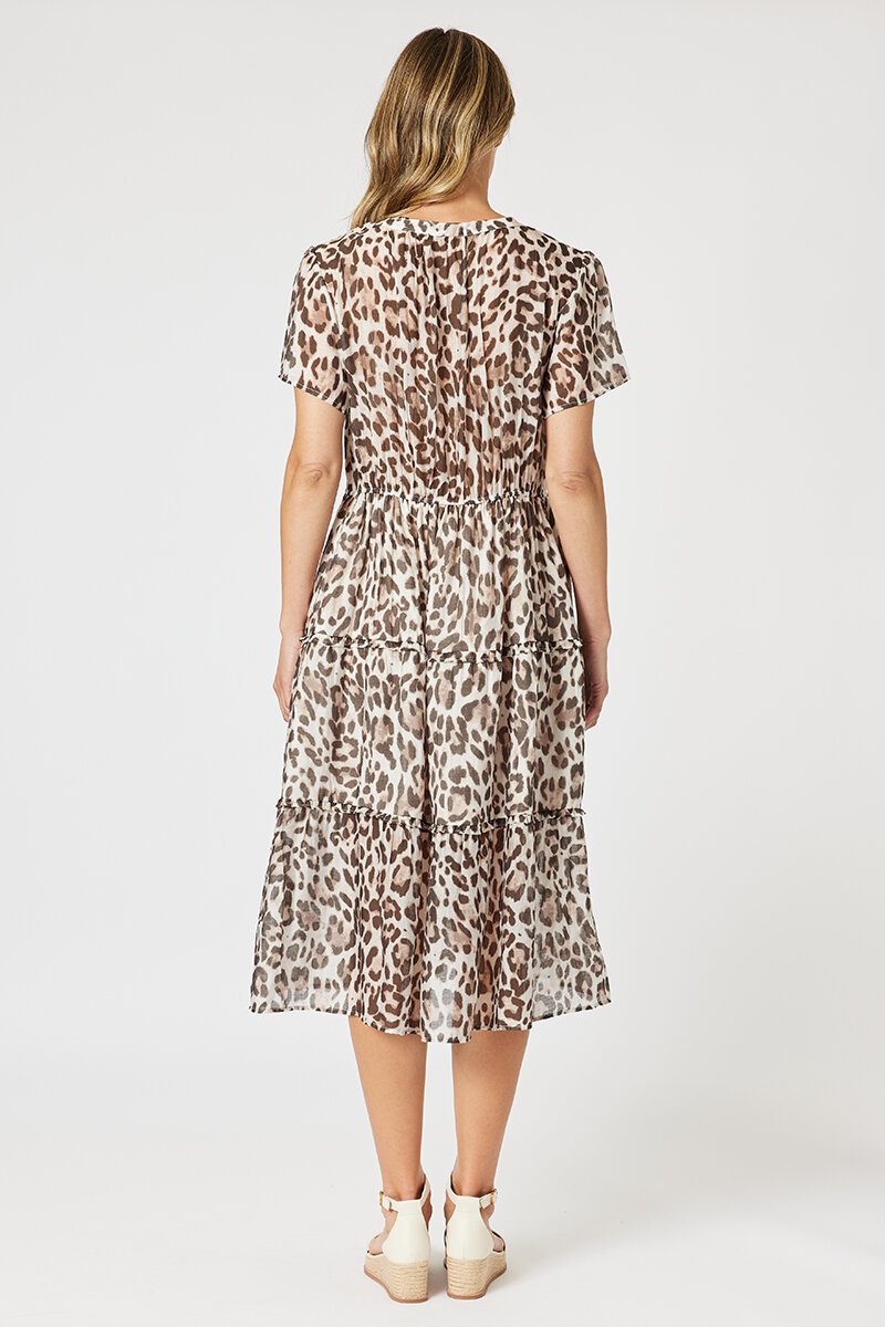 Make a statement with the On Safari Dress – a floaty tiered style in a bold animal print. Featuring short sleeves, a 3/4 button front, and handy side pockets, it’s fully lined through the body for comfort and coverage. The midi length and relaxed silhouette make it perfect for everything from lunch dates to getaways.