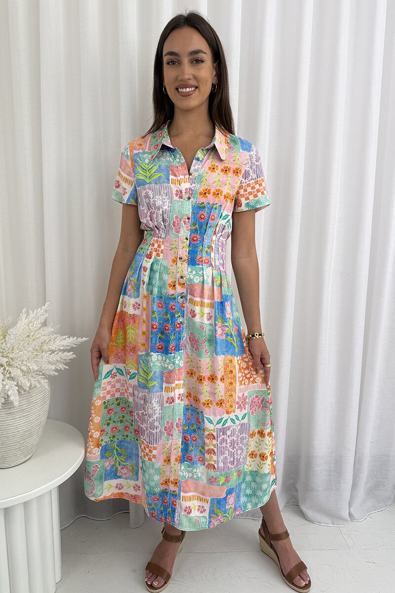 Say hello to sunshine dressing with the Grace & Co Patchwork Shirt Dress. Fun, flattering, and full of personality, this collared button-down style brings a playful twist to everyday wear — just add sandals and you’re out the door.