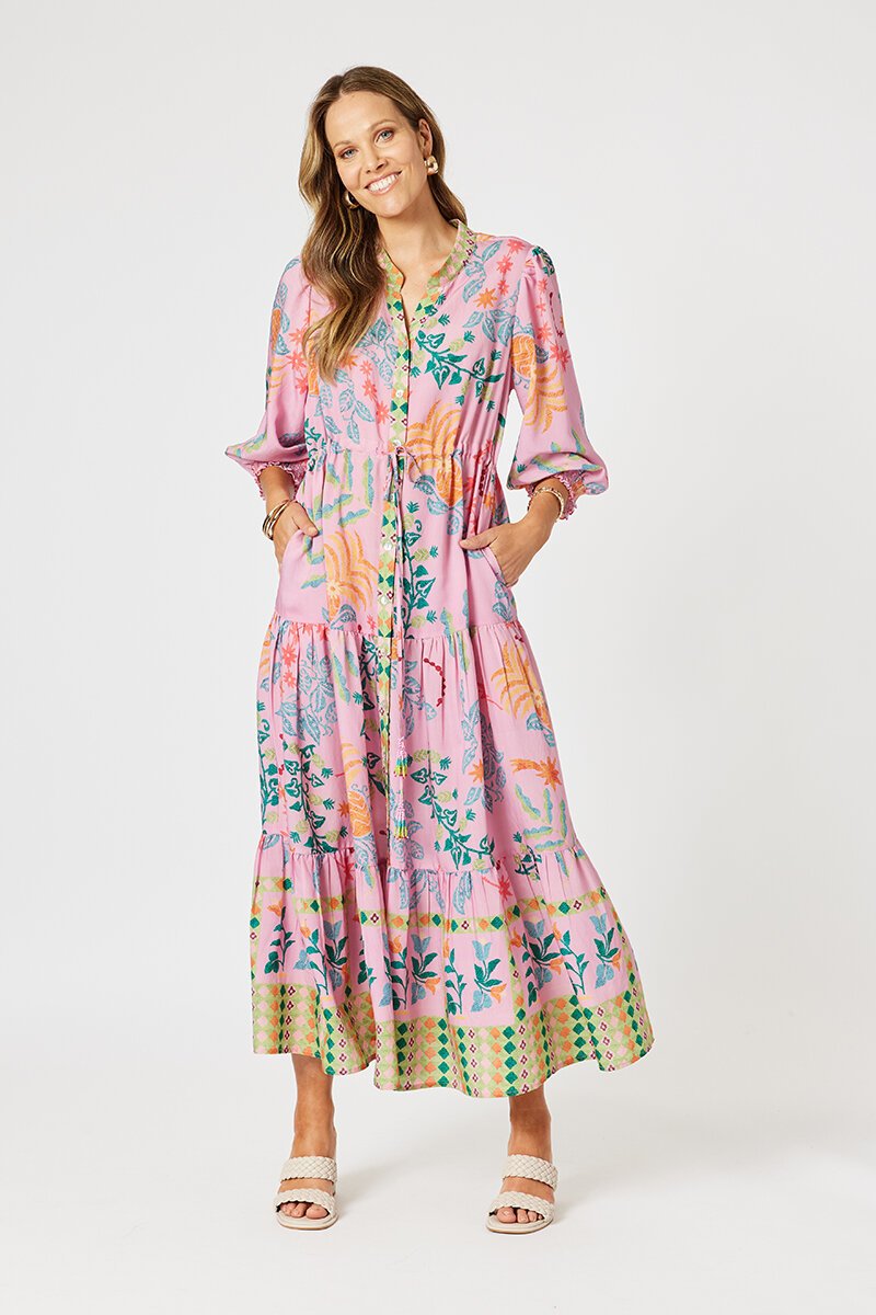 The Hammock + Vine Mardi Gras Print Dress is pure joy in dress form. With its tiered silhouette, button front, and statement print, it’s made for sunshine and smiles. Lightweight, flowy, and full of personality — just add sandals and good vibes.
