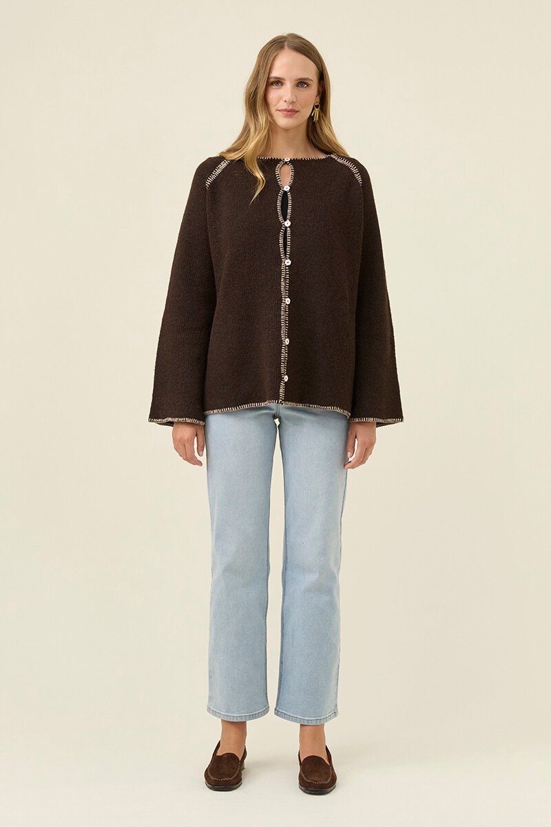 The Isle Of Mine Athena Button Cardigan is an easy layering piece with subtle detail. Soft knit, relaxed shape and contrast stitching make it perfect for everyday wear, styled open or buttoned through.