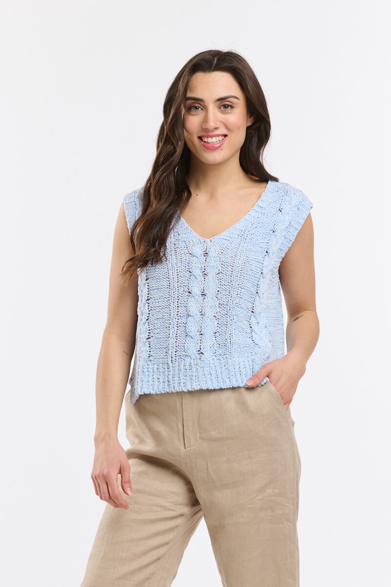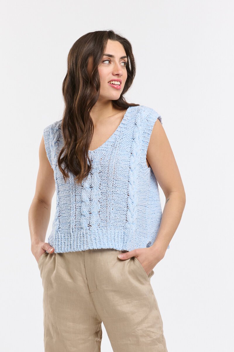 The Josie Vest is your go-to layering piece with a fresh twist. Featuring a chunky knit design and a relaxed, sleeveless cut, it adds just the right amount of texture to any look. Perfect over a tee, shirt, or worn solo.