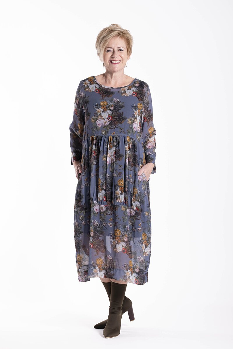 The Jordan Dress is a relaxed, easy-wear style with soft shaping and a flattering drape. Featuring a clean bodice and single front gathered panel, it creates movement without bulk, showcasing the Divides by Nature print.