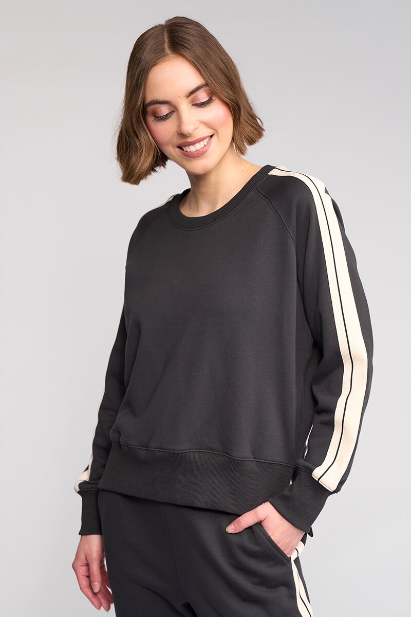 Sporty with a polished edge. The Rebel Jumper is your off-duty essential, featuring contrast stripe detail through the sleeves and a relaxed fit for easy layering. Pair it with the matching pants or your favourite denim for effortless everyday style.