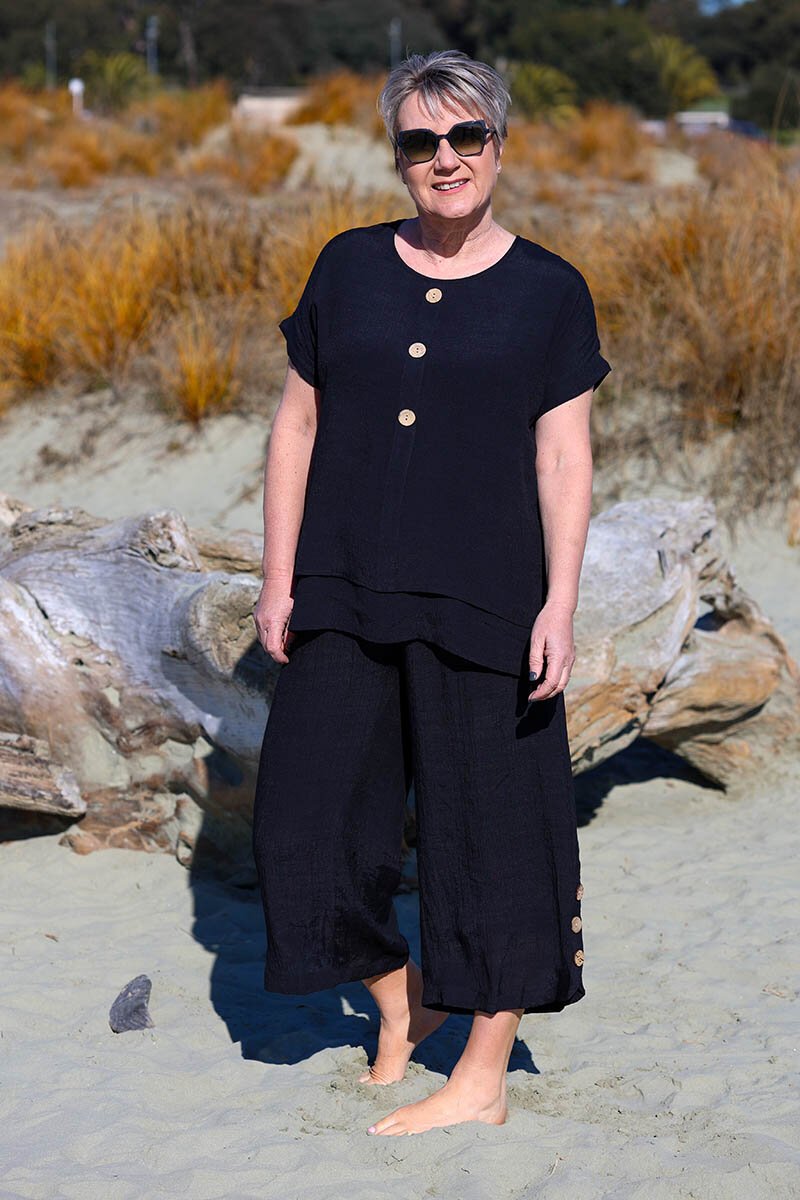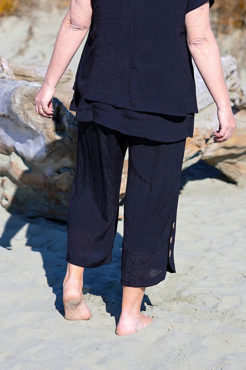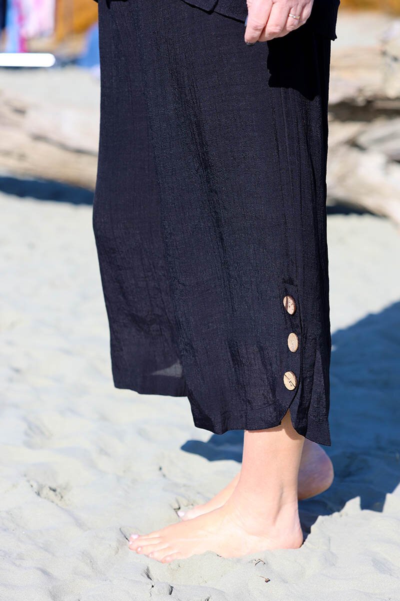 Relaxed yet refined, the La Mode Side Button 3/4 Pant is a summer staple. Cut to a cropped length with a wide-leg silhouette, they’re detailed with statement side buttons at the hem for an easy touch of style. Perfect for pairing with floaty tops or linen shirts.