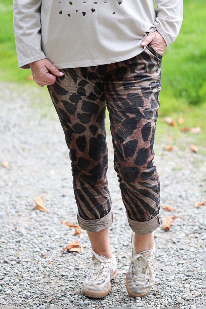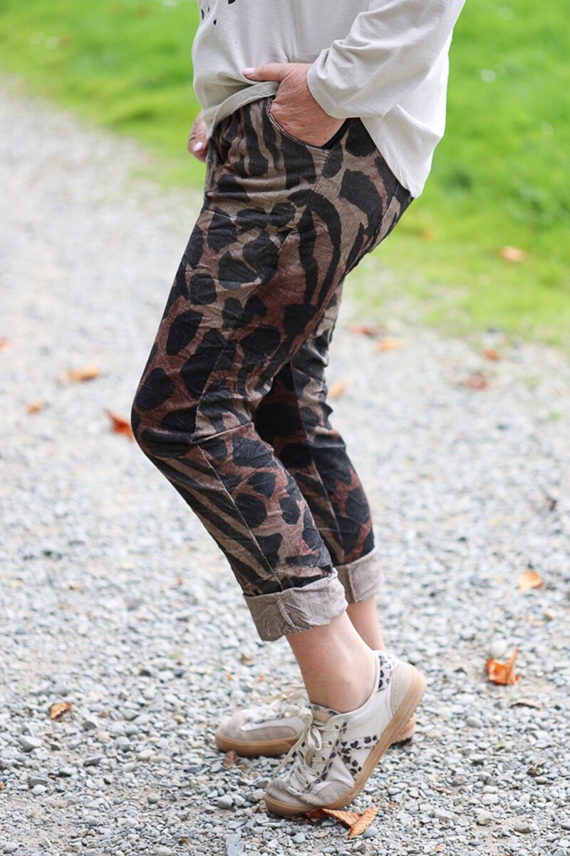 The La Strada Animal Print Crinkle Pants are your statement pair that still feel easy to wear. With their relaxed fit and textured crinkle finish, they bring a bit of personality to your everyday while keeping things comfortable.