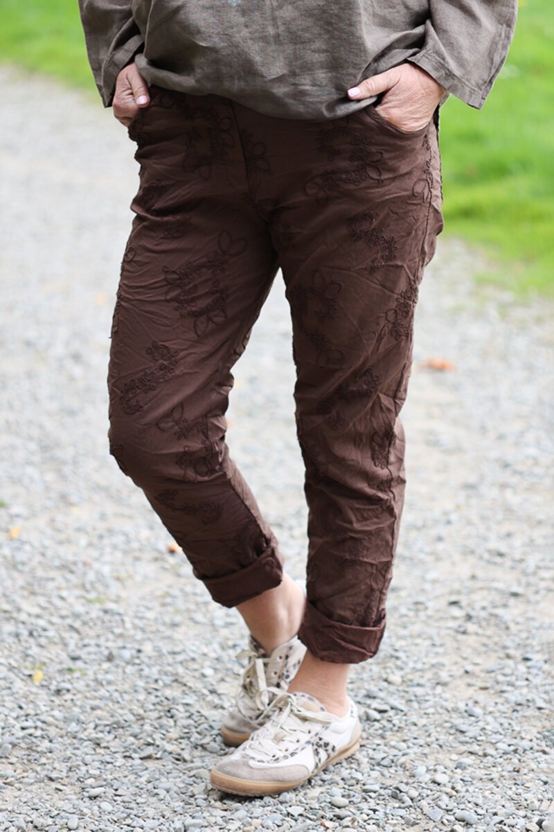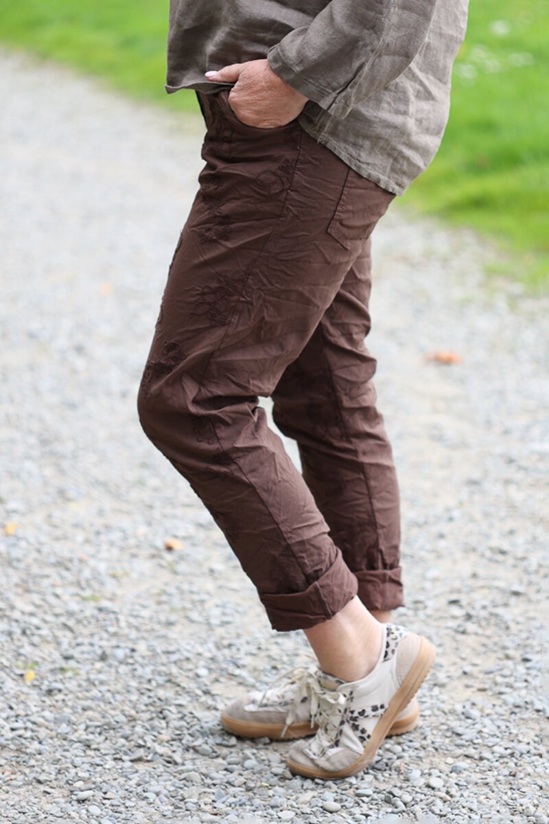 The La Strada Embroidery Pants feature a flattering slim fit with soft stretch fabric and subtle embroidered detail, perfect for pairing with your favourite knits and tops.