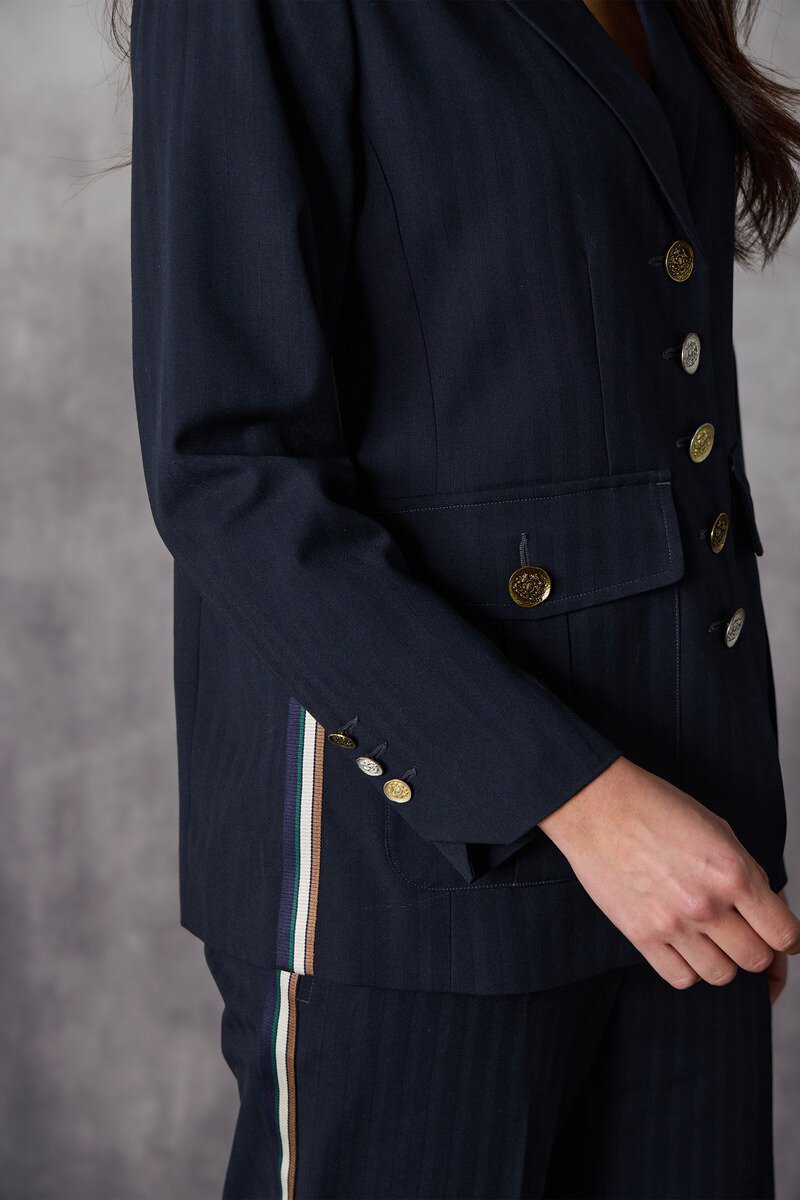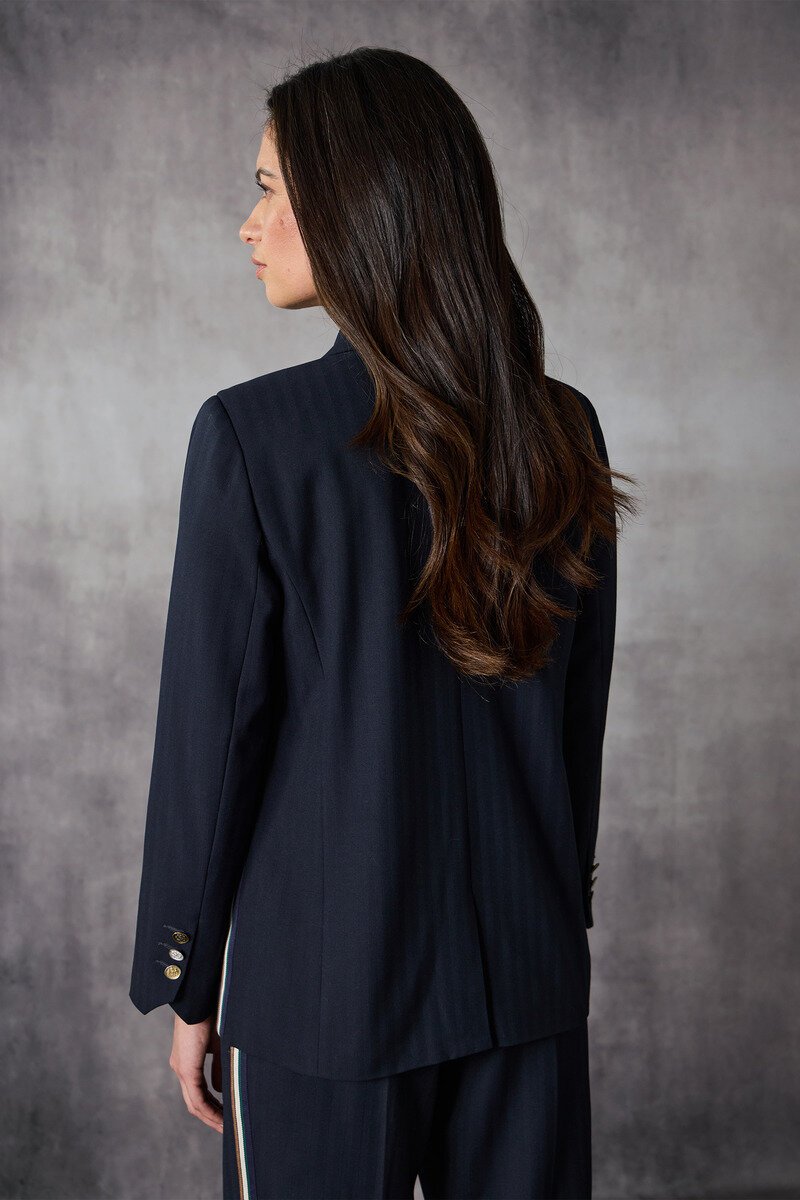 A classic tailored jacket with a modern edge. Detailed buttons that make it more than 'just a blazer'. Structured yet easy to wear, this piece elevates everyday outfits and works just as well styled back with denim or matching tailoring.