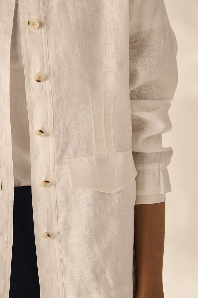 The Hayden Jacket is the kind of piece that makes “throw on and go” look effortlessly polished. With its classic shirt-style collar, button-through front, and flattering drawstring detail at the back, it nails that balance between relaxed and refined.