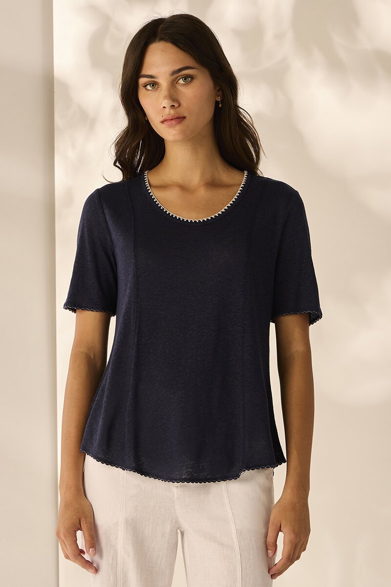 The Lania The Label Salute Top is a chic essential with delicate scallop trim detail that adds subtle femininity. Crafted in a soft, lightweight fabric with a relaxed fit, it’s an easy piece to style with tailored pants, skirts, or denim.