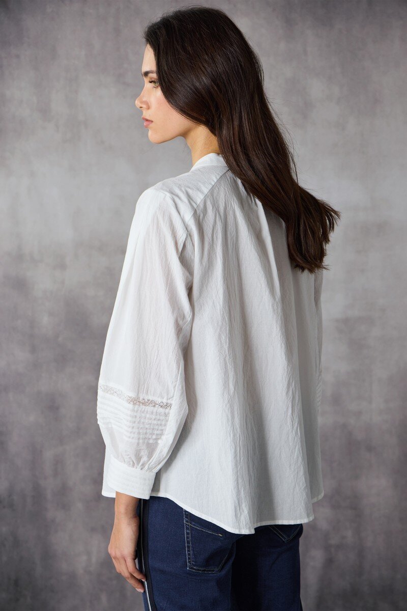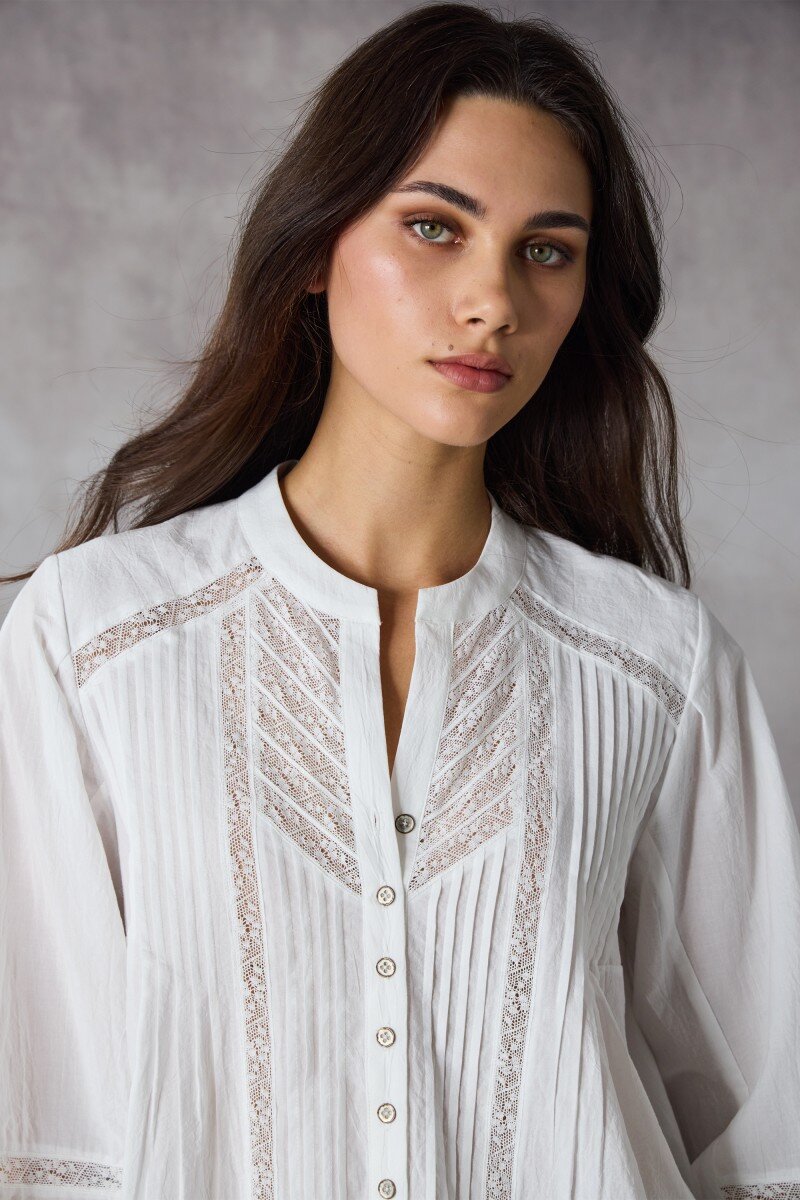 A timeless blouse with beautiful vintage detailing. Soft, lightweight and easy to wear, this piece adds quiet polish to denim or your favourite tailored pants. Perfect to dress up or down.