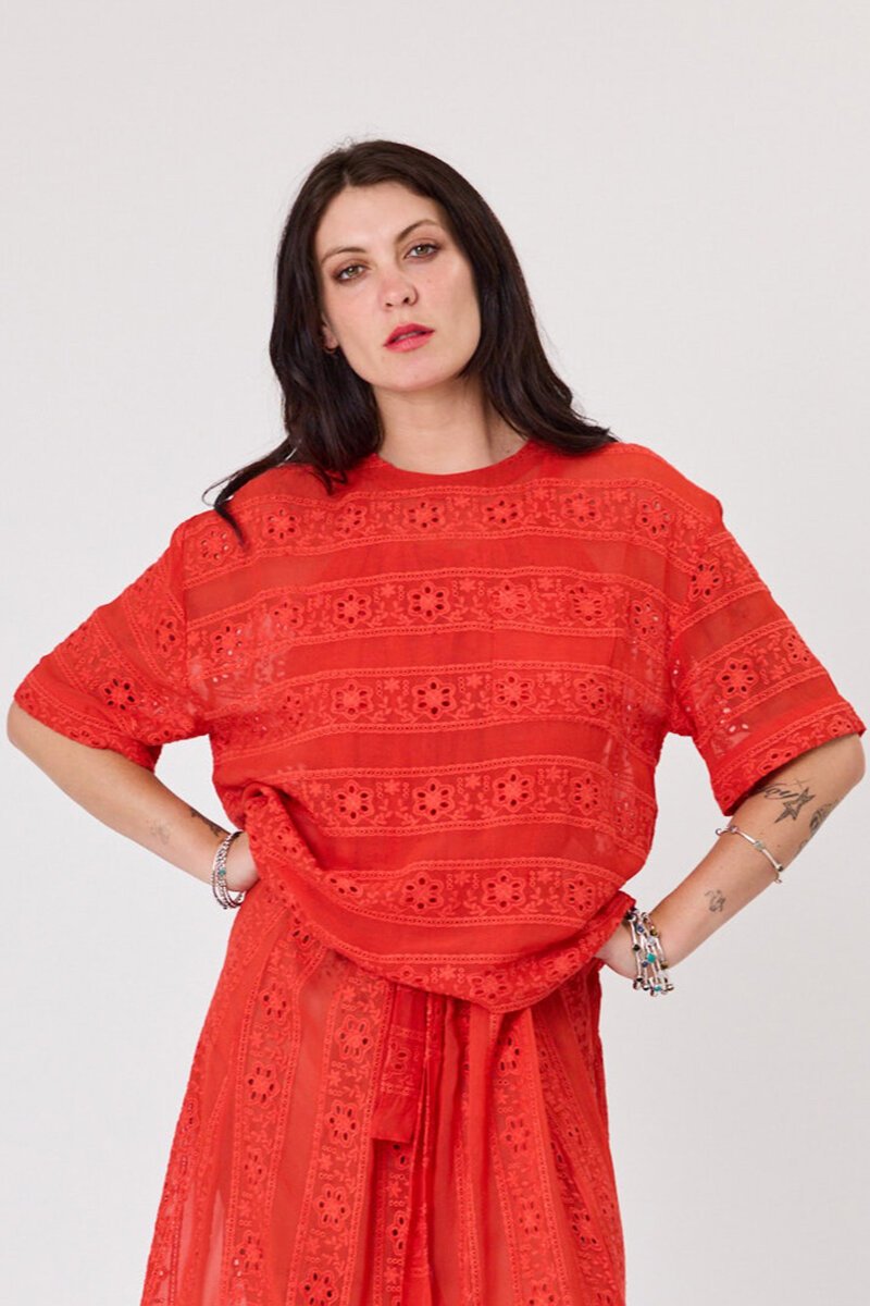 The Libertine Kindred Blouse is that easy, throw-on-and-go piece that still feels special. Crafted in a soft embroidered cotton with relaxed sleeves and a boxy fit, it’s perfect for pairing with denim or shorts for effortless everyday style.