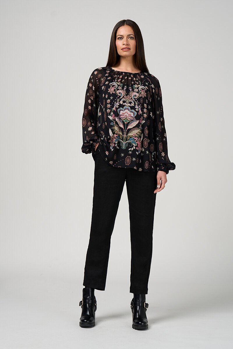 The Loobies Story Antoinette Top is all about soft drama and beautiful detail. A floaty sheer blouse with a gathered round neckline and blouson sleeves finished with gentle elastic cuffs, complete with a colour-matched A-line cami for easy, confident wear.