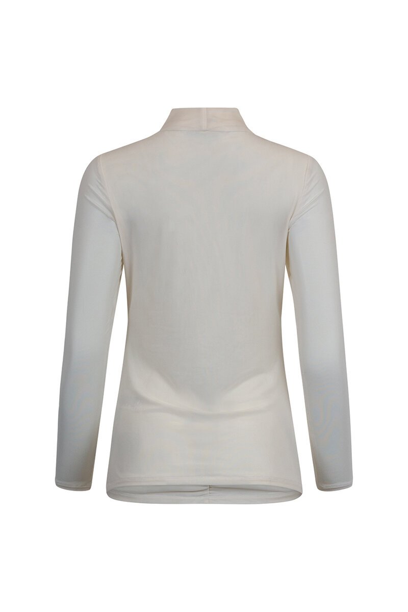 The Loobies Story Aston Ruched Top is sleek, sculpted, and seriously chic. Designed in soft mesh with a built-in lining, it hugs beautifully while the ruched centre front creates a flattering shape. The high neckline and sheer sleeves add a modern edge—perfect for layering under blazers or styling solo with statement trousers.