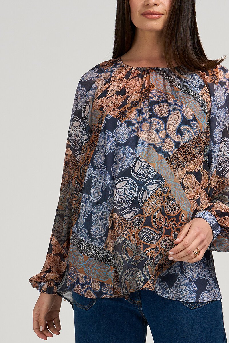 The Loobies Story Byzantium Top brings beautiful detail and effortless elegance. With its soft flowing fabric, intricate patchwork print and gathered neckline, it’s an easy piece that instantly elevates your favourite denim.